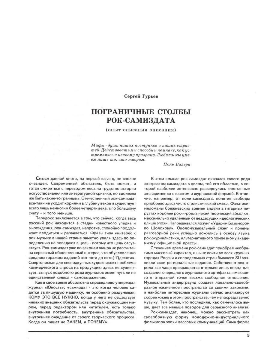 Название книги говорит само за себя. Перед вами энциклопедия развития независимой рок-журналистики на территории Советского Союза, СНГ и России. Она проливает свет на те времена, когда рок-музыка была уделом разрозненных групп энтузиастов, разбросанных по СНГ. На те годы, когда интерес к рок-музыке мог поставить человека вне закона и настроить против него консервативное советское и постсоветское общество.