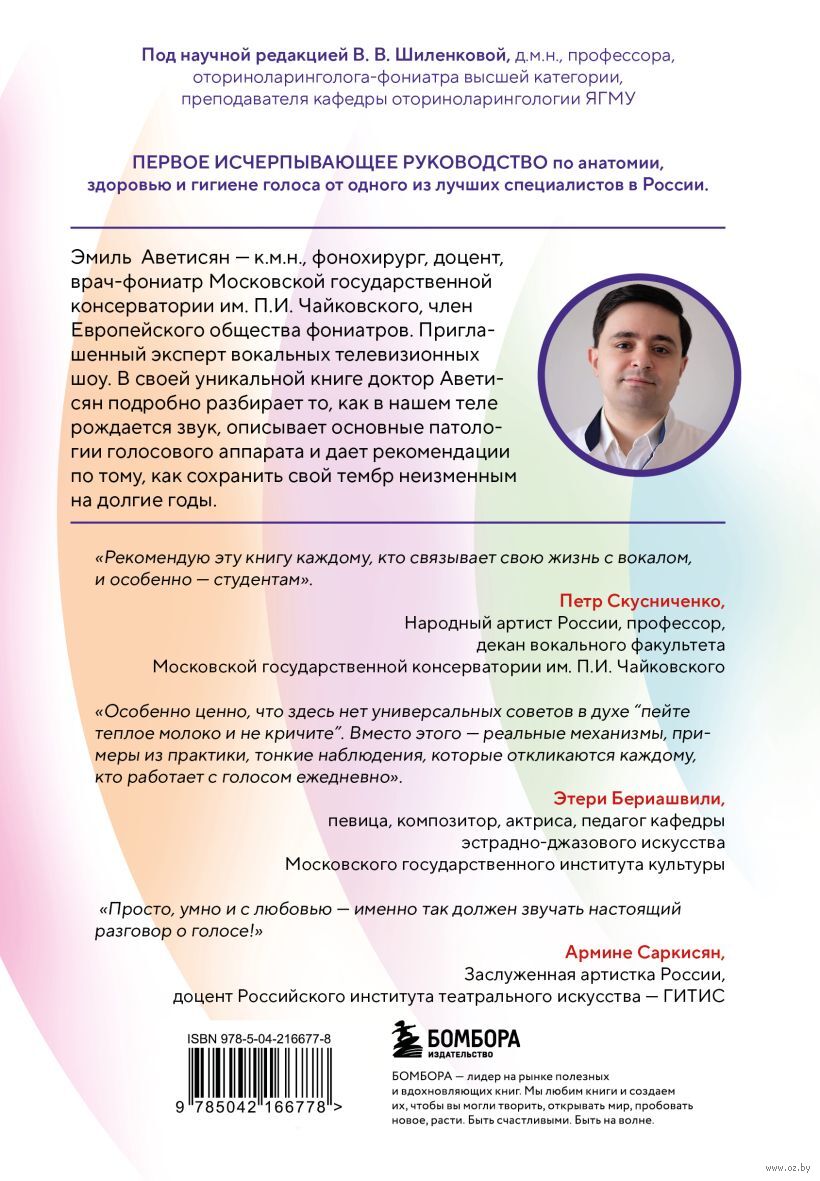 Один из лучших специалистов страны, врач-фониатр Эмиль Аветисян, представляет комплексное руководство по сохранению красоты вашего тембра. Автор объясняет, как устроен наш голос, почему он может пропасть, откуда берутся узлы на связках и многое другое. Вы узнает о различных патологиях голосового аппарата, возрастных особенностях развития голоса (как детского, так и взрослого) и о том, когда нужно срочно обращаться к врачу, а когда можно справиться с проблемами самостоятельно.