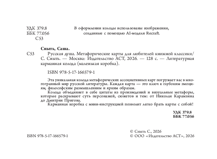 Эта уникальная колода метафорических ассоциативных карт погружает вас в многогранный мир русской литературы. Каждая карта – это ключ к глубоким эмоциям, философским размышлениям и ярким образам.