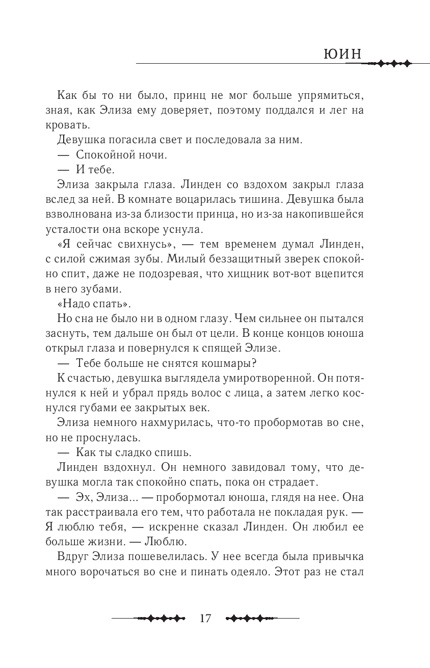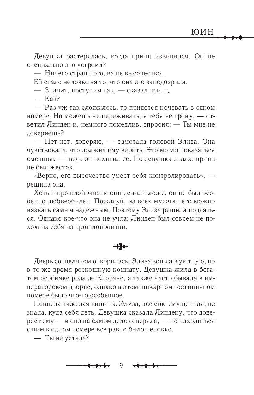 Элизу ждут серьезные испытания – девушке нужно изменить будущее, свидетельницей которого она однажды стала. На кон поставлены не только судьба и процветание родной Империи. Нельзя допустить, чтобы ее возлюбленный Линден, одержимый местью, сломался под гнетом собственноручно устроенного конфликта. Элиза и Линден готовятся к официальной церемонии помолвки, но внезапно здоровье императора резко ухудшается, а наследного принца обвиняют в покушении на измену. Жизнь Минчестера висит на волоске, а политические круги гадают, чем закончится противостояние в императорской семье. Сможет ли Линден отомстить за гибель матери и сестры и обрести счастье? Решится ли Михаэль убить своего брата, зная, насколько он важен для Элизы?