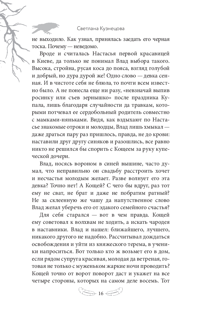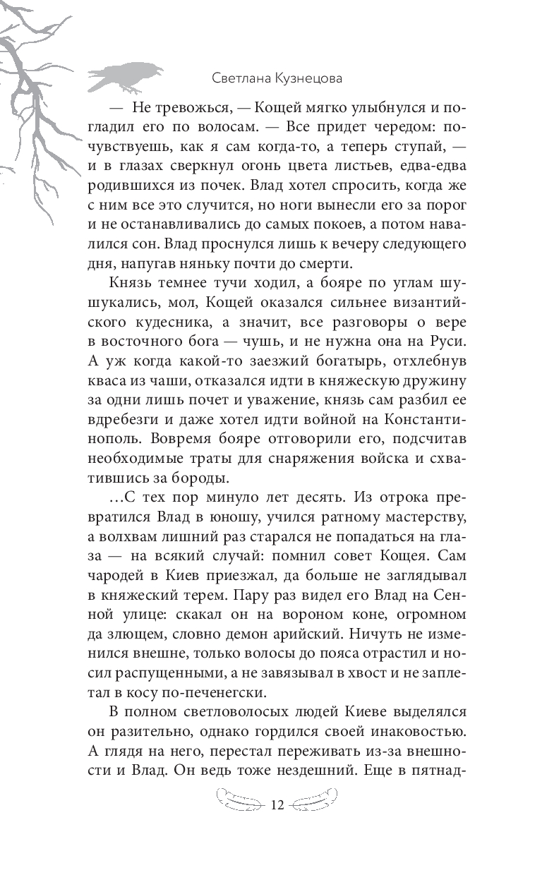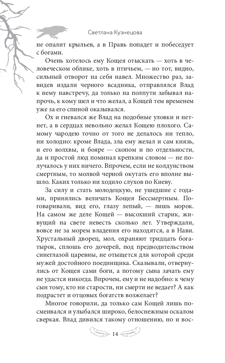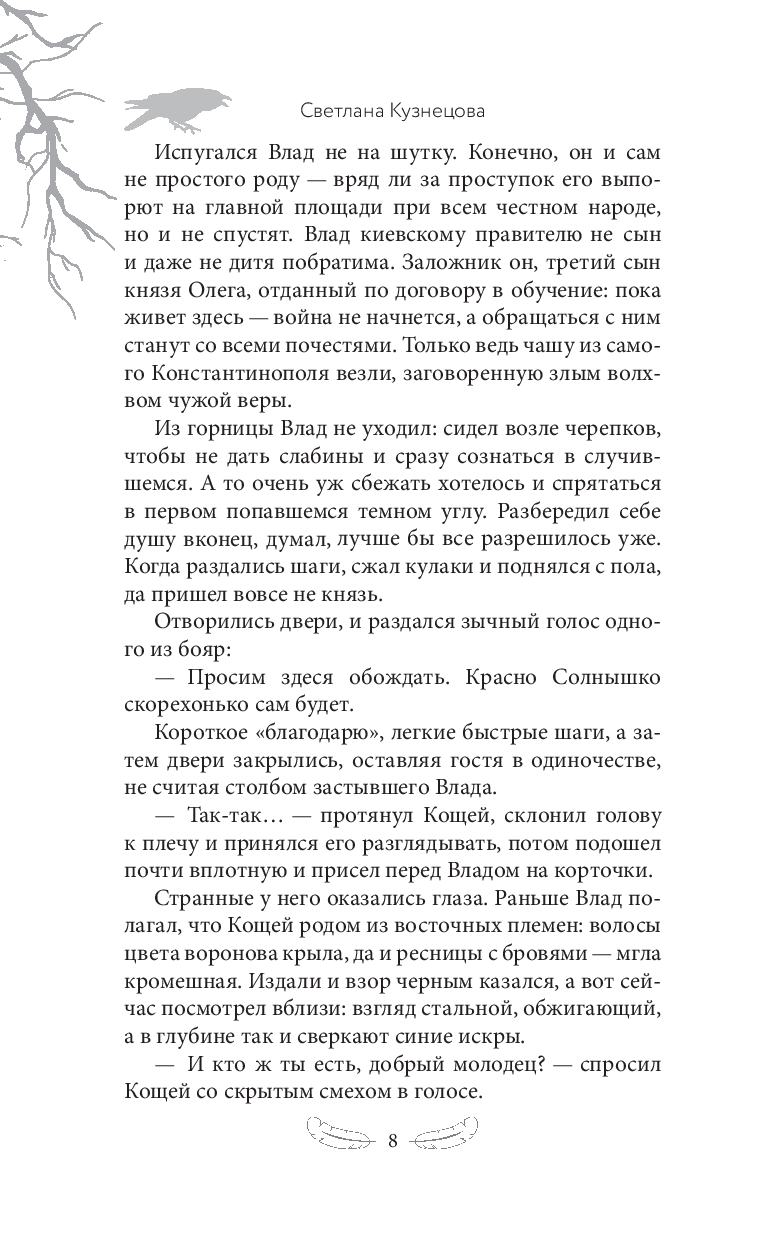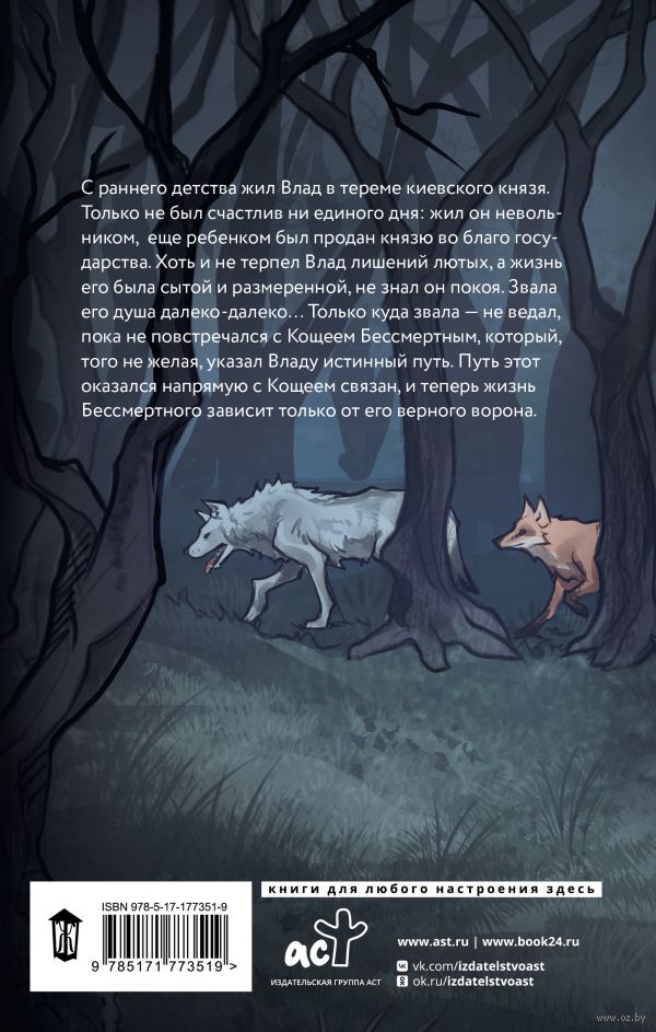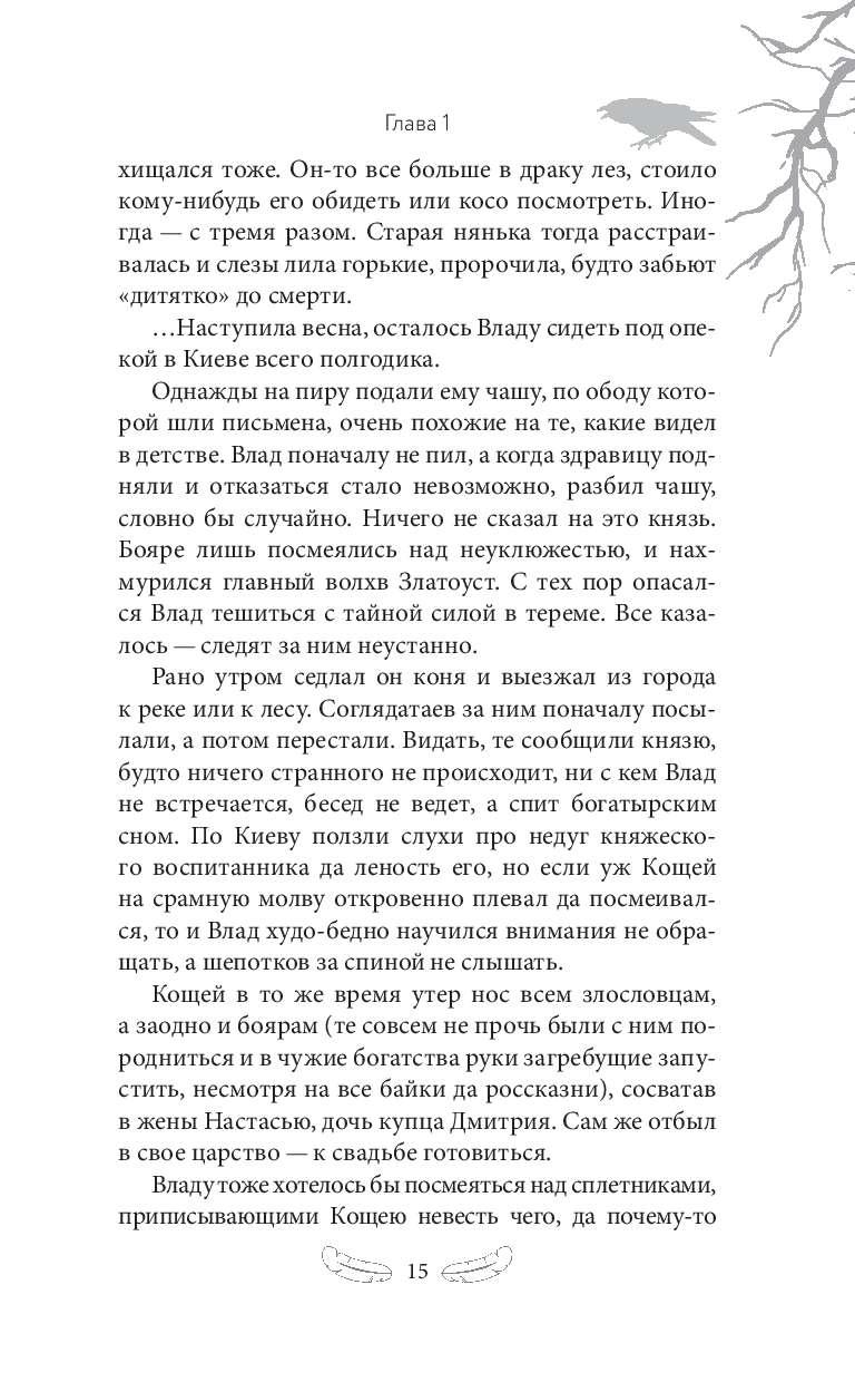 С раннего детства жил Влад в тереме киевского князя. Только не был счастлив ни единого дня: жил он невольником, что еще ребенком был продан князю во благо государства. Хоть и не терпел Влад лишений лютых, а жизнь его была сытой и размеренной, не знал он покоя. Звала его душа далеко-далеко… Только куда звала – не ведал, пока не повстречался с Кощеем Бессмертным, который, того не желая, указал Владу истинный путь. Путь этот оказался напрямую с Кощеем связан, и теперь жизнь Бессмертного зависит только от его верного ворона.