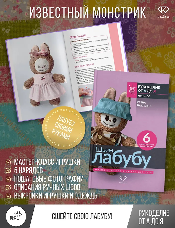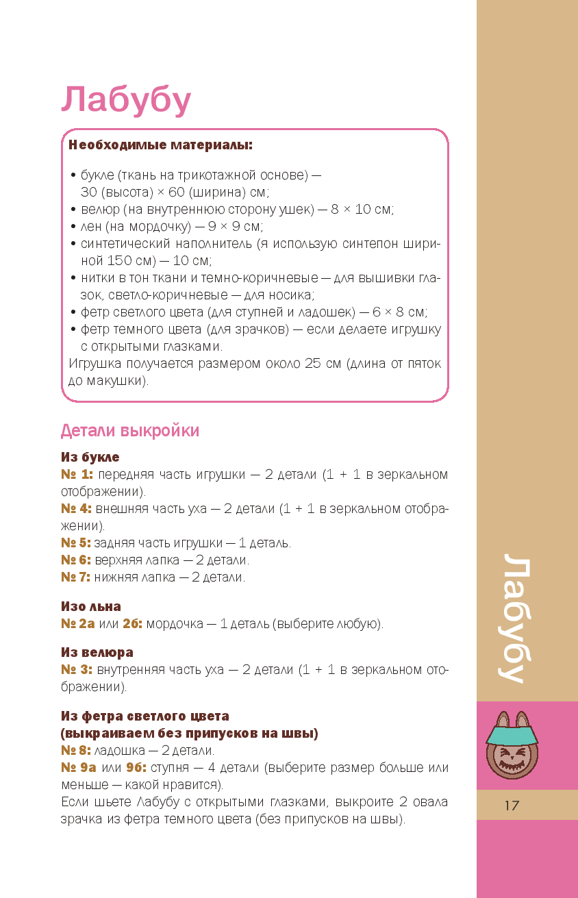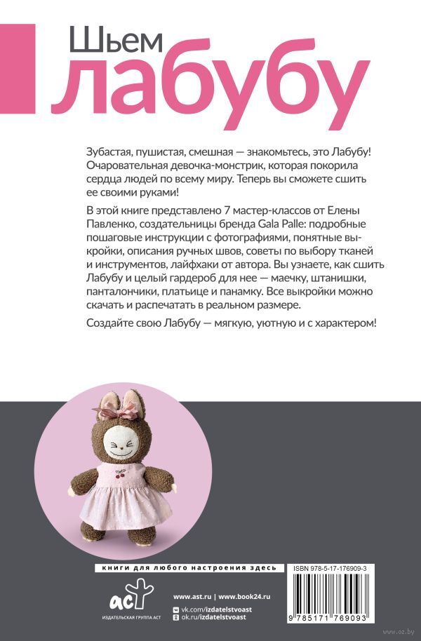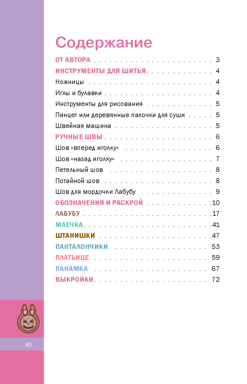 В этой книге представлено 6 мастер-классов по шитью игрушки Лабубу и нарядов для нее: маечки, штанишек, панталончиков, платьица и панамки.