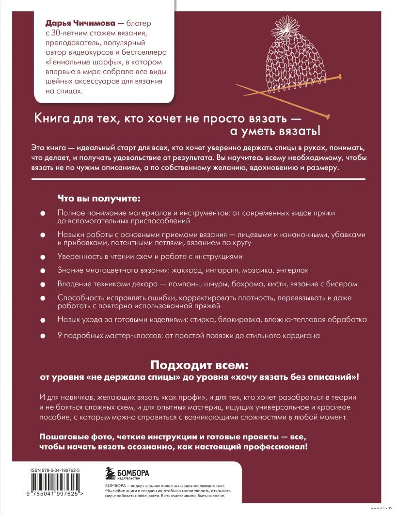 Никакой воды, никаких устаревших методов – только современный подход, системно и по делу. Пошаговые объяснения, фото, схемы, образцы, подсказки и готовые изделия – всё, что нужно, чтобы не просто "вязать по описанию", а понимать и творить.