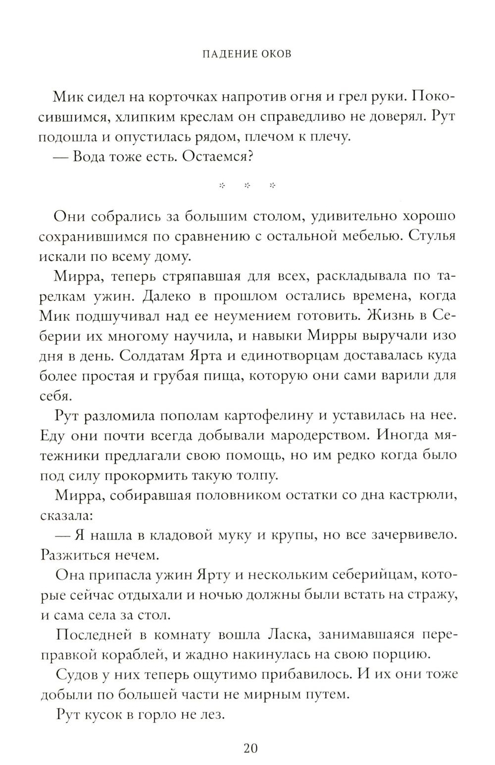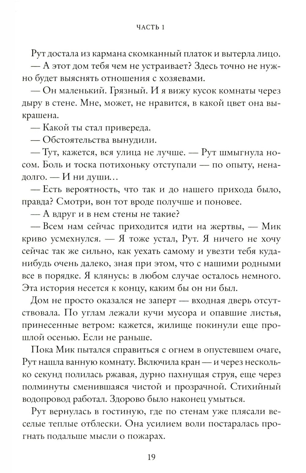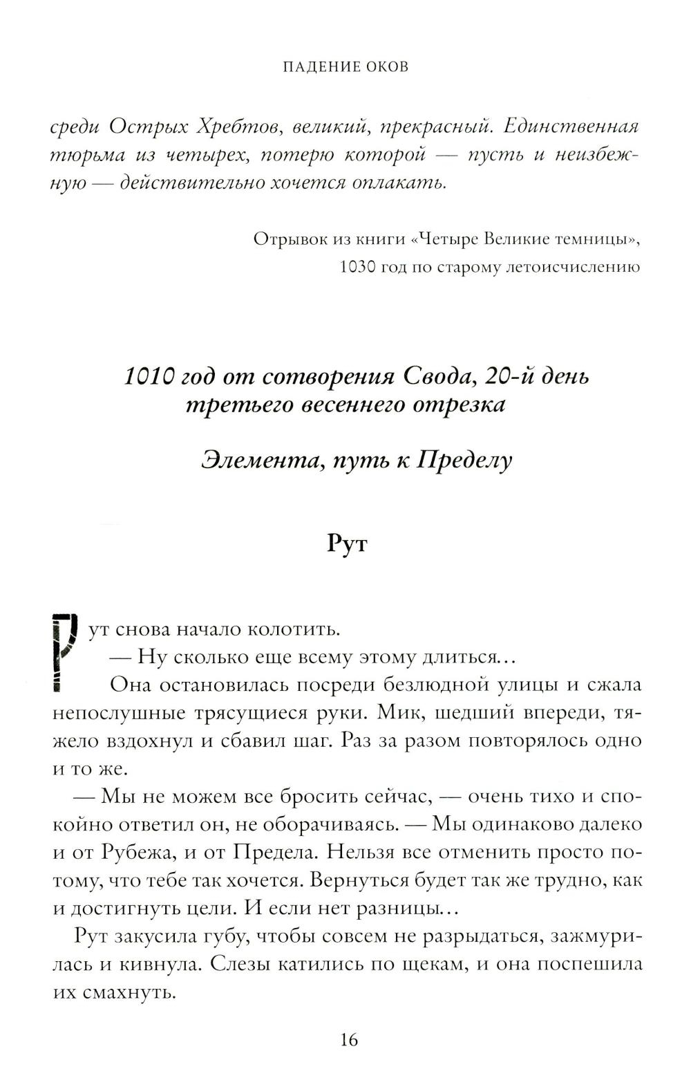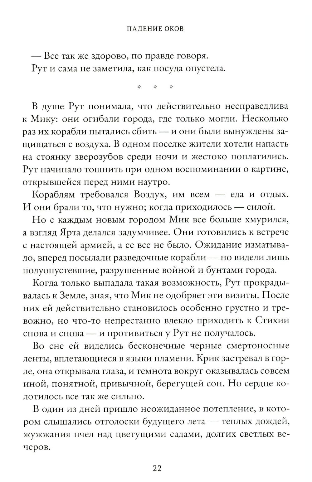 Все это надломило миролюбивую Рут. Ее отношения с Миком раскалены: она видит в нем только яростный карающий Огонь. Предел впускает мятежников, но он почти пуст: ни стражников, ни армии Аврума, ни сопротивления. Зато здесь герои наконец встретятся с Каем и Бартеном и узнают, что Дарина в плену у Воздуха. Конфликт Мика и Кая разгорается с новой силой, а вина последнего за себерийскую бойню становится невыносимой. И тем не менее им нужно продолжать путь вместе: освобождать пленников Тюрем и саму Воду ; искать ушедших на зов , надеясь, что среди них будет и Риккард – и что его сознание еще возможно вернуть.