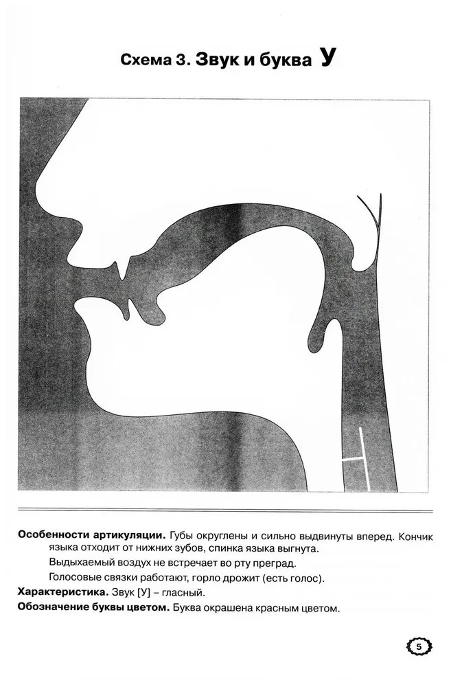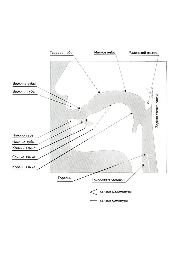 Вашему вниманию предлагаются 46 схем, в которых показано положение артикуляционного аппарата во время произнесения гласных и согласных (глухих и звонких, твердых и мягких) звуков. В русском языке звуков больше чем букв, так как акустические различия между твердыми и мягкими согласными обусловлены дополнительным изменением положения отдельных частей артикуляционного аппарата.