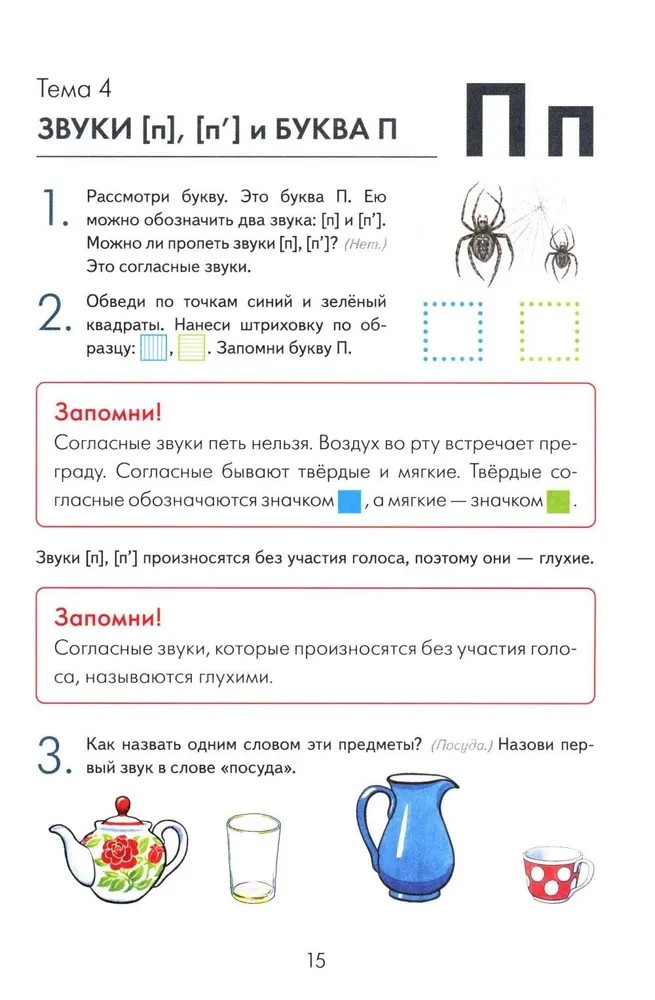 Кроме того, работа по пособию способствует развитию фонематического восприятия, а также основных психических функций (памяти, мышления и речи). А красочные иллюстрации букваря помогут сохранить у детей интерес к занятиям на протяжении всего процесса обучения.
