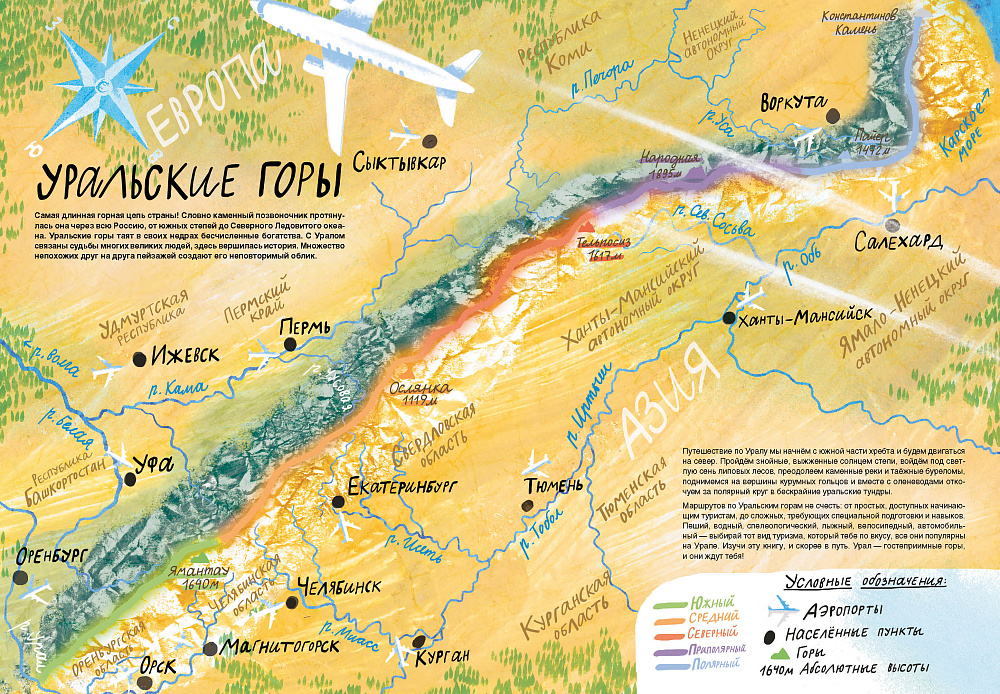 Тогда тебе нужен проводник. Захватывающее книжное путешествие, в которое ты отправляешься, подготовит тебя к встрече с настоящим Уралом. Ты многое узнаешь об истории горного хребта, его природных памятниках и заповедных территориях, познакомишься с обитателями Урала, местными легендами и преданиями. Пройдёшь разнотравные степи, широколиственные леса, таёжные буреломы и бескрайние тундры по следам опытного путешественника, что оставил подсказки – маршруты по Уралу разной степени сложности, правила поведения в дикой природе и рекомендации для подготовки к твоему первому походу в горы.