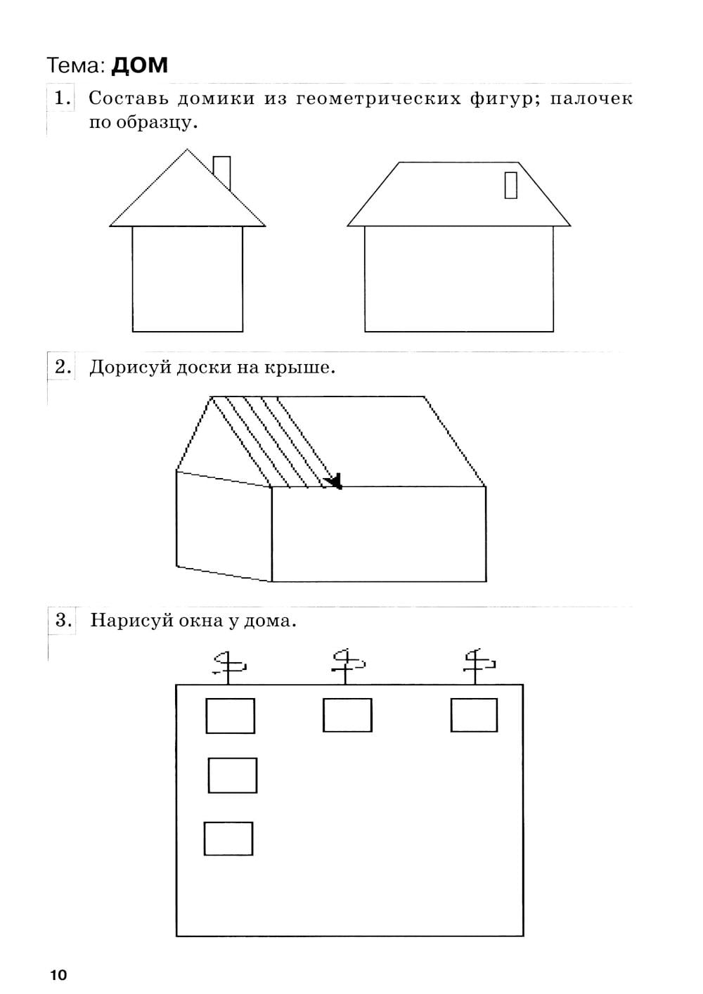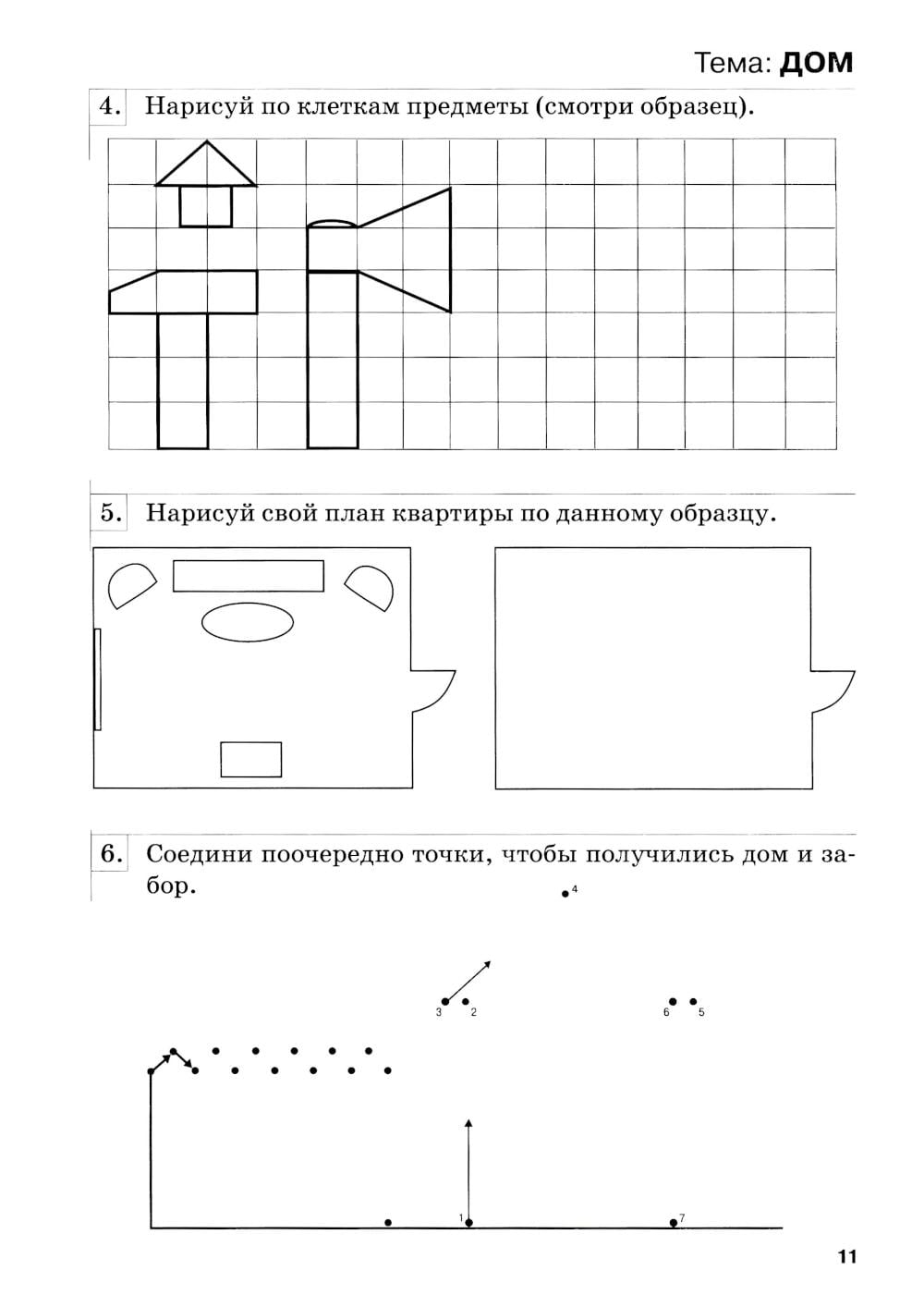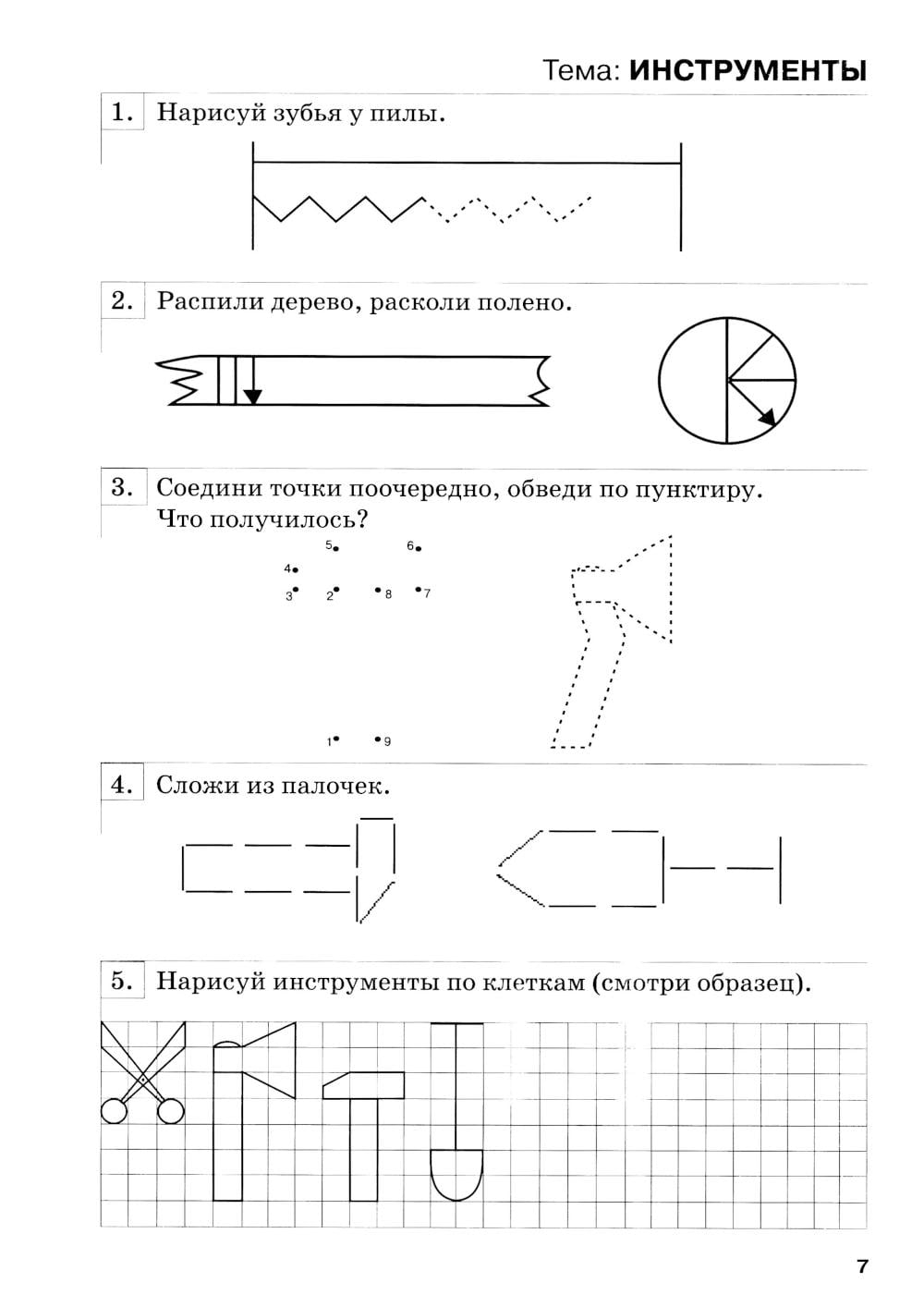 Тетрадь содержит задания, способствующие развитию графических навыков, и задания по конструированию.
