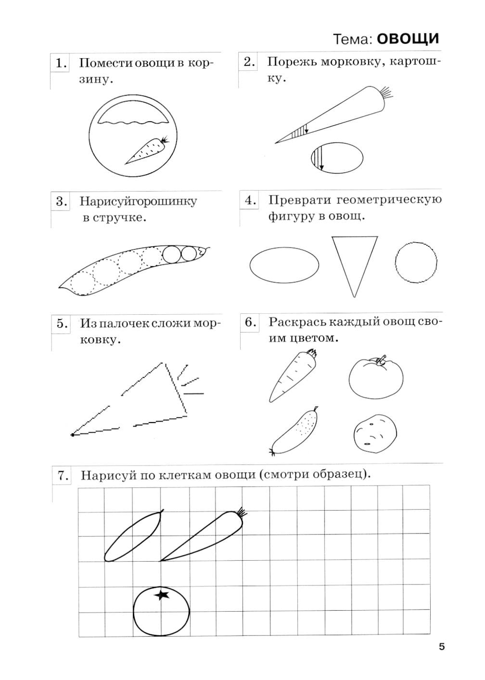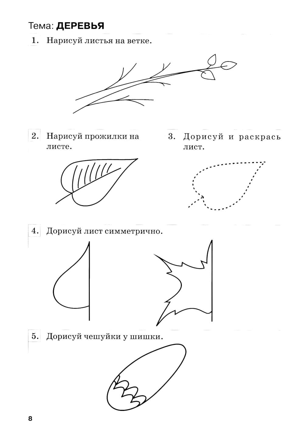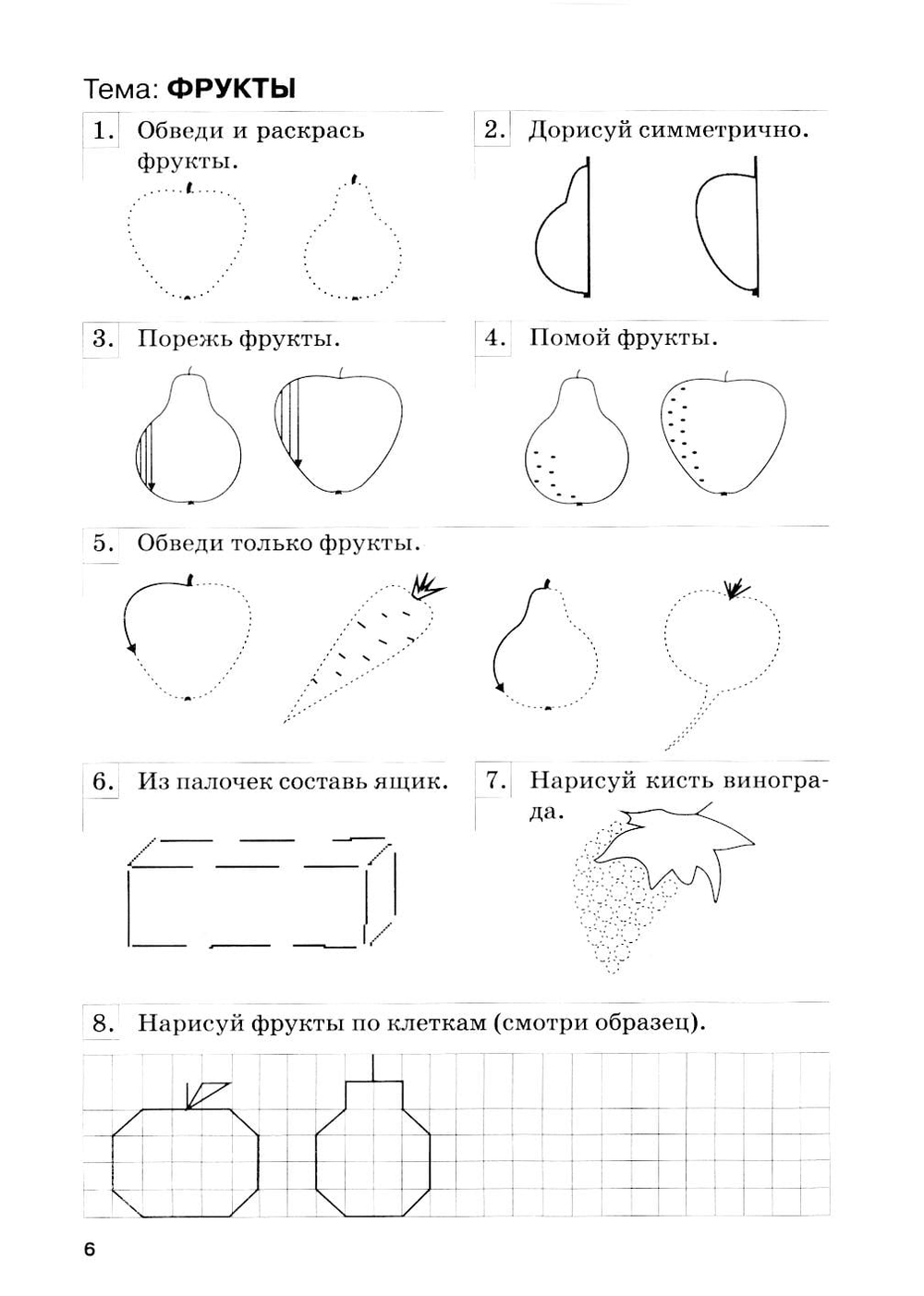 Тетрадь содержит задания, способствующие развитию графических навыков, и задания по конструированию.