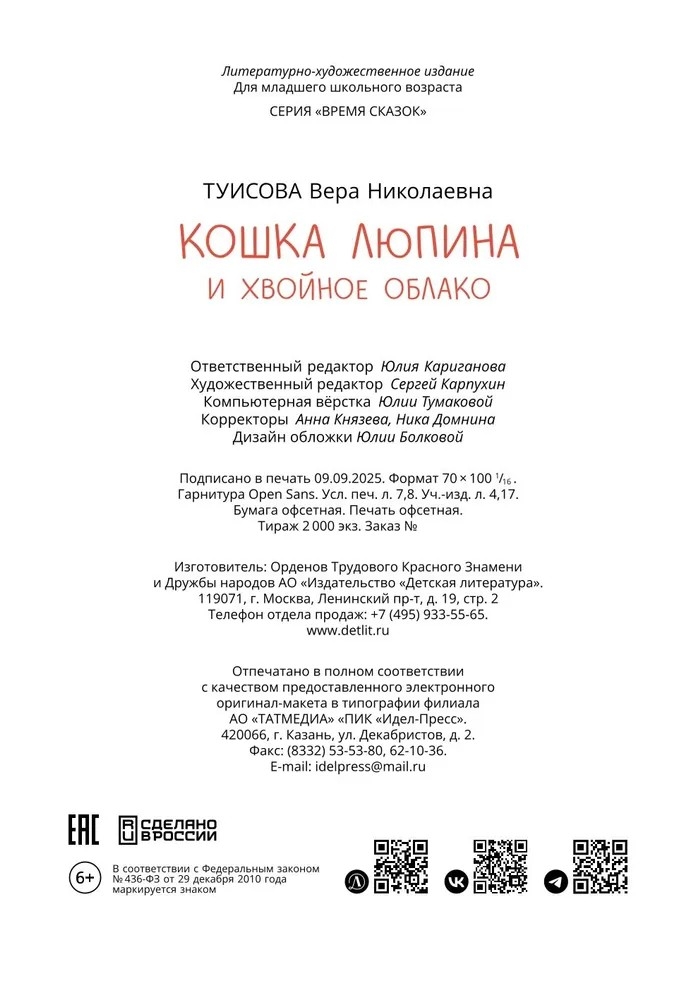 | Изготовитель | ОАО "Издательство "Детская литература". 127015, РФ, г. Москва, ул. Новодмитровская, д. 5А, стр. 5 |