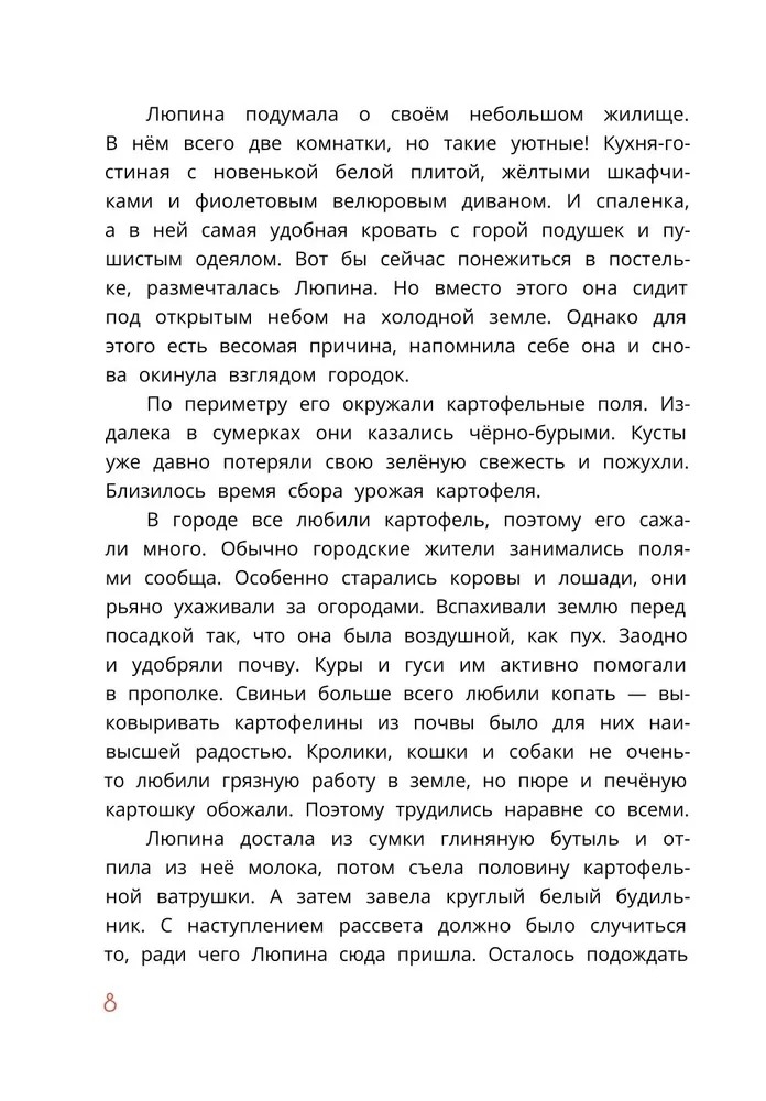 Каждое утро из леса к небольшому звериному городку приплывает странное зелёное облако из еловых иголок. Пушистая горожанка кошка Люпина решает тайком за ним проследить и оказывается в лесной чаще. Выясняется, что лесные жители во главе с суровой птицей-глухаркой замышляют украсть у горожан урожай картофеля.