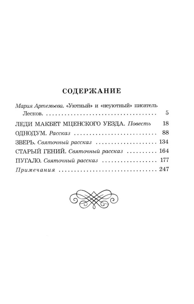 В книгу вошли повесть "Леди Макбет Мценского уезда", рассказы "Однодум", "Зверь", "Старый гений", "Пугало" замечательного русского писателя Н. С. Лескова (1831–1895).