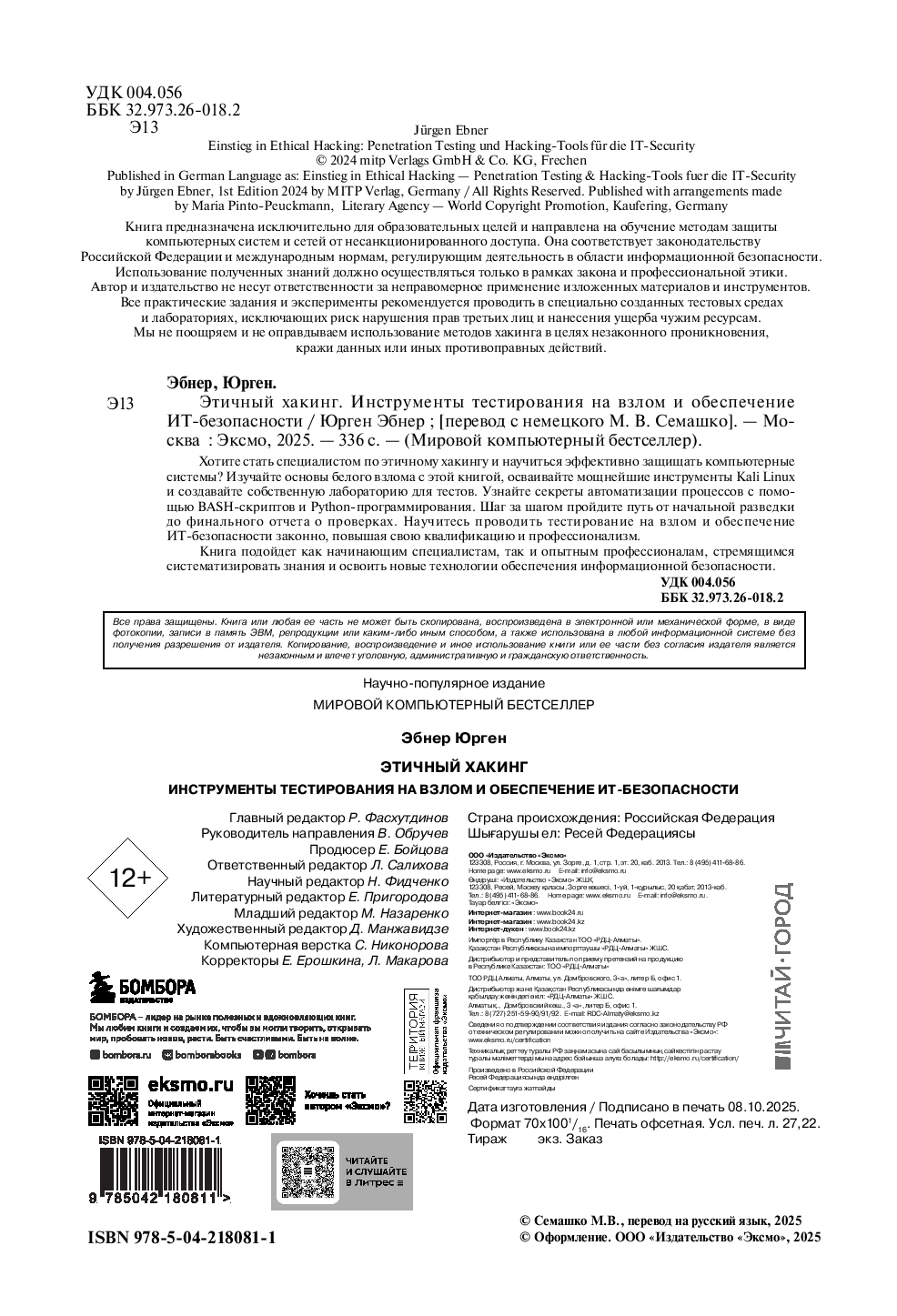 | Название в оригинале | Einstieg in Ethical Hacking - Penetration Testing & Hacking-Tools fur die IT-Security |