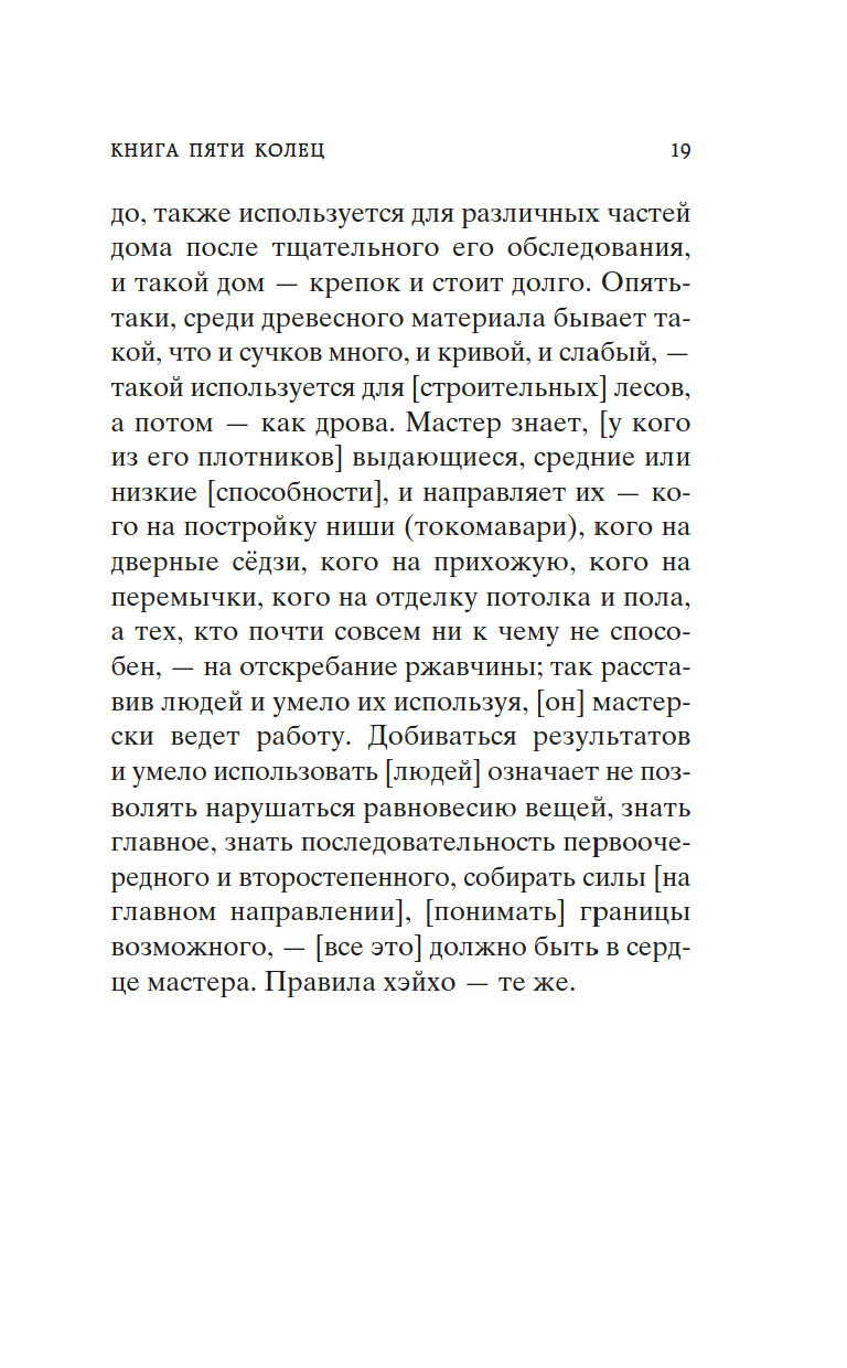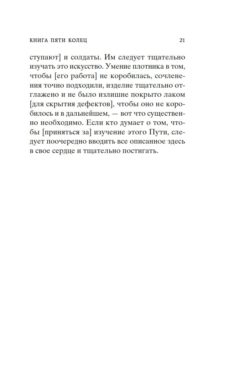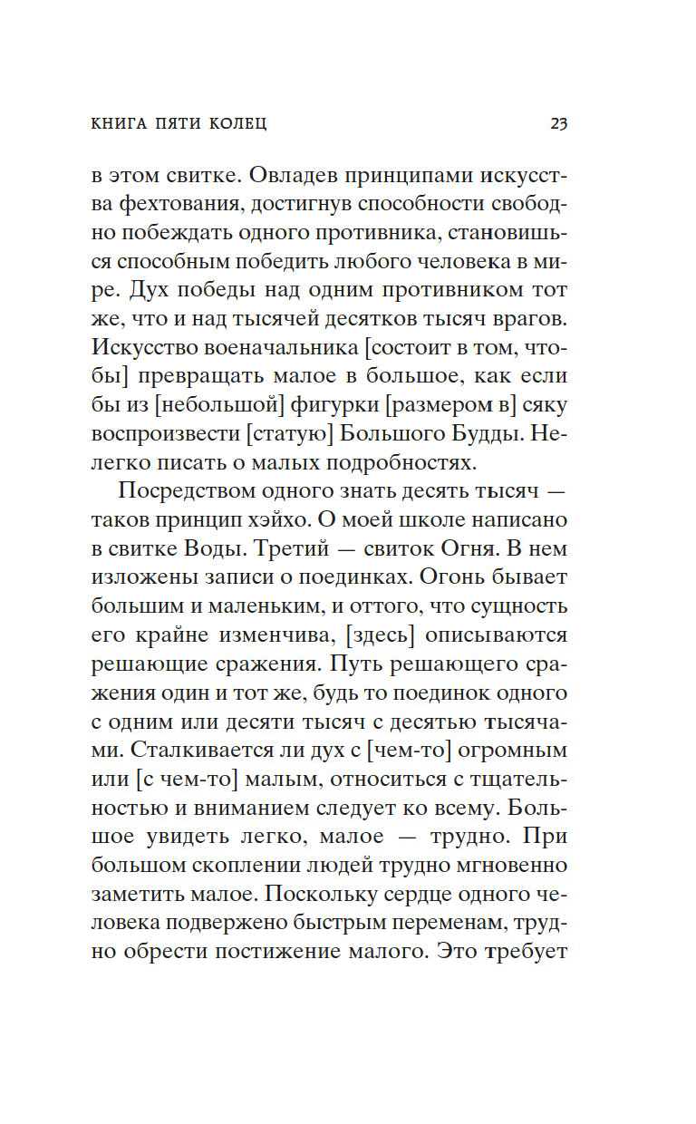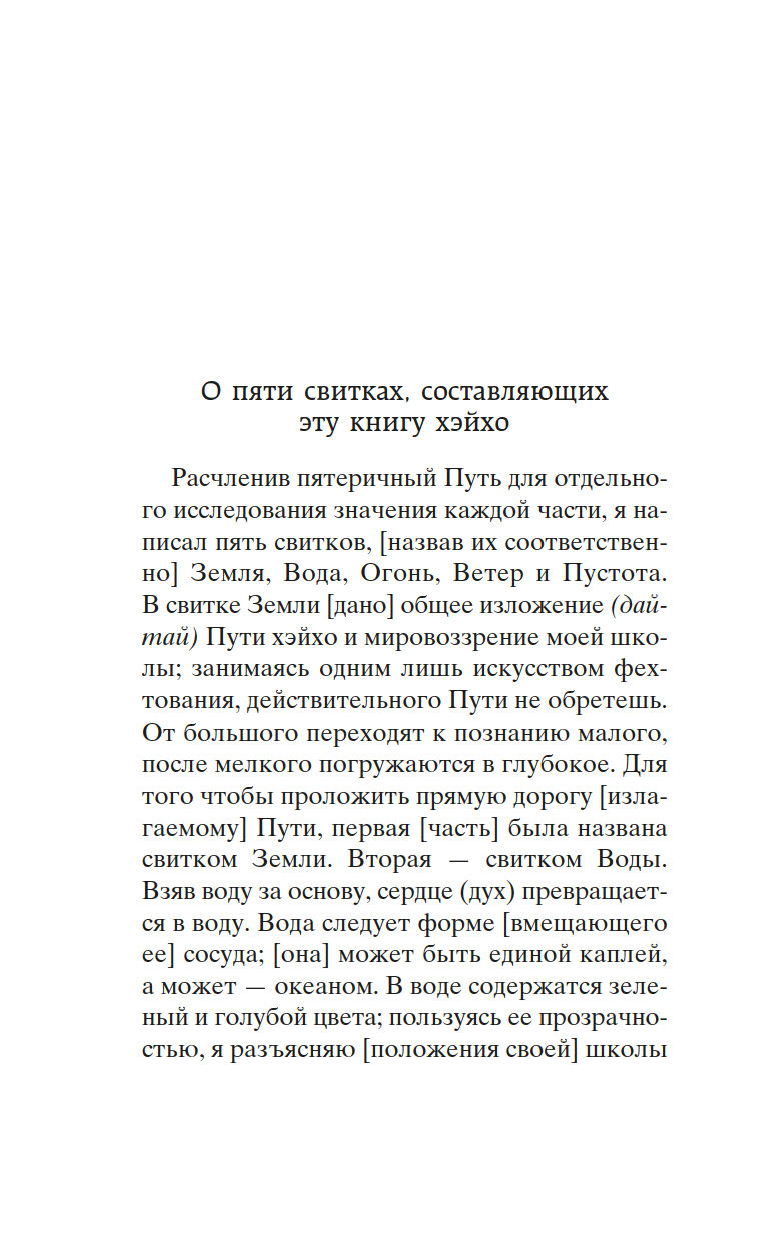 "Книга Пяти колец" прославленного фехтовальщика Миямото Мусаси, непревзойденного мечника, разработавшего технику боя двумя клинками, представляет собой как практическое руководство по освоению оружия и тактике поединка (до сих пор актуальное для тех, кто хотел бы овладеть искусством японского фехтования), так и пособие по управлению внутренним состоянием.