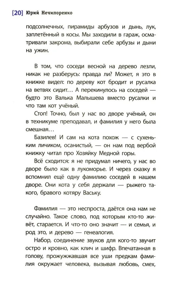 Книга впервые полно представляет Нечипоренко-прозаика: она полна коротких историй, в которых почти отсутствует вымысел – но есть чудеса, которые являет нам живая жизнь. Автор доверительно сообщает читателю очень рискованные вещи, истории мальчишеских триумфов, обид и унижений – но делает это с таким тактом и вкусом, что рассказы его будут интересны самому широкому кругу читателей – независимо от пола и возраста.
