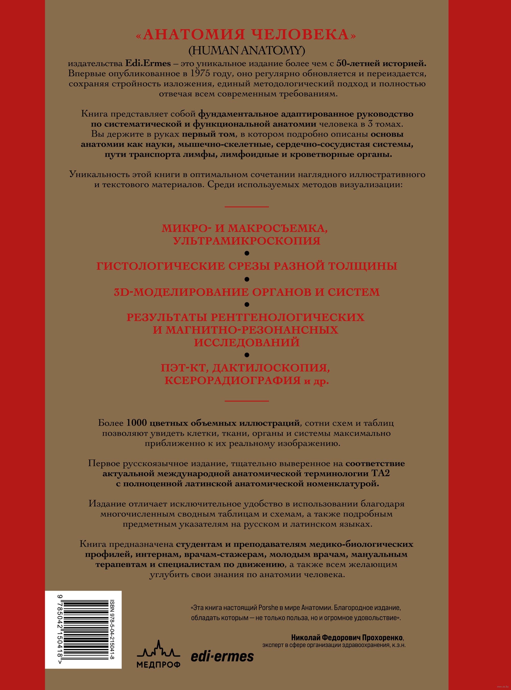 Это первое русскоязычное издание, тщательно выверенное на соответствие актуальной международной анатомической терминологии TA2 с полноценной латинской анатомической номенклатурой. Все подписи к изображениям также представлены на русском и английском языках.