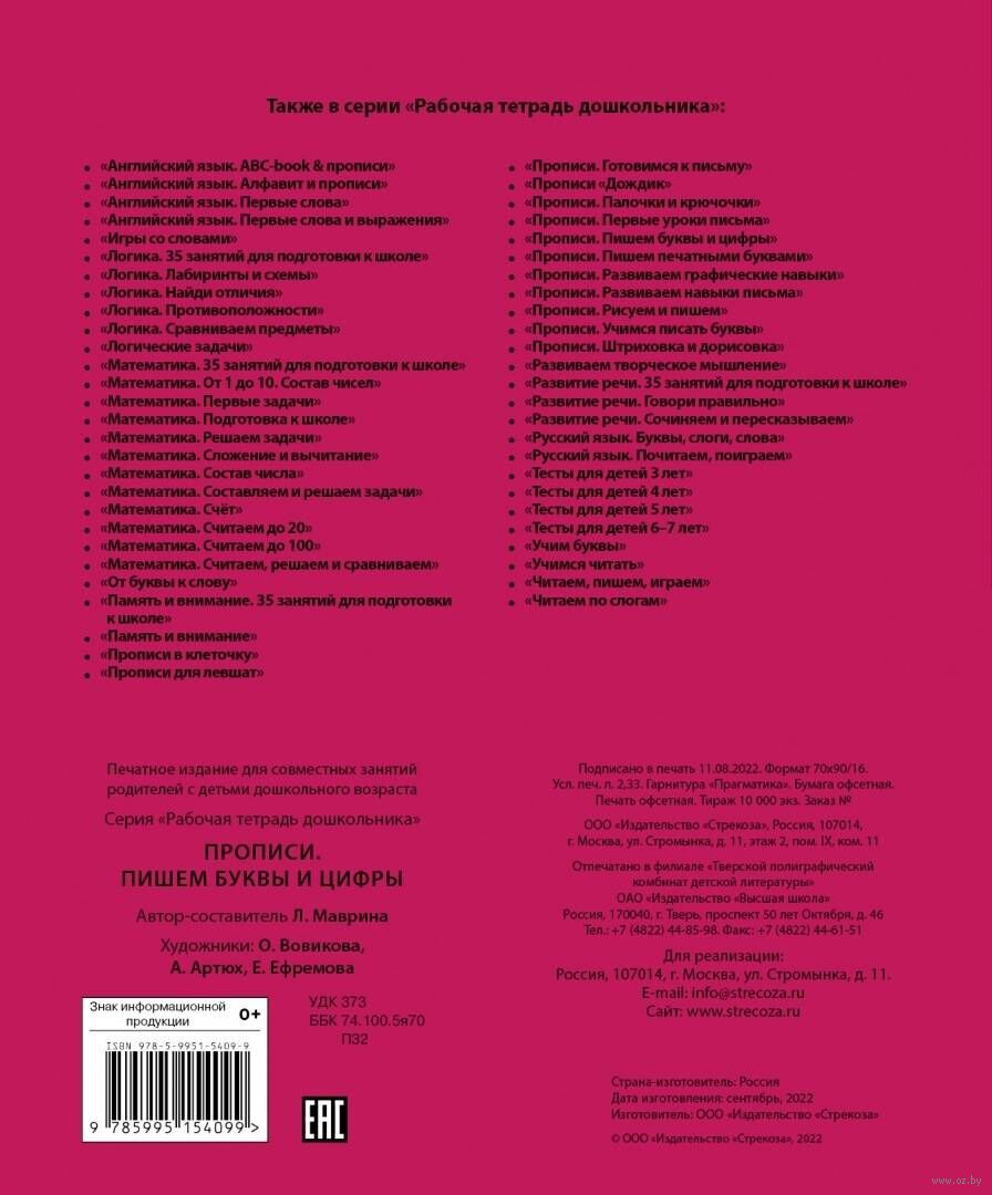 Условия бонусной программы| Серия | Рабочая тетрадь дошкольника |