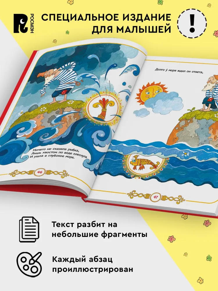 А эта книжка совершенно особенная. В ней текст разделен на небольшие логические части, проиллюстрированные яркими, детальными картинками. Разглядывая книгу и слушая классические строки, малыши смогут увидеть и лучше понять все, что происходит в сказке, так что даже самые озорные непоседы не заскучают!