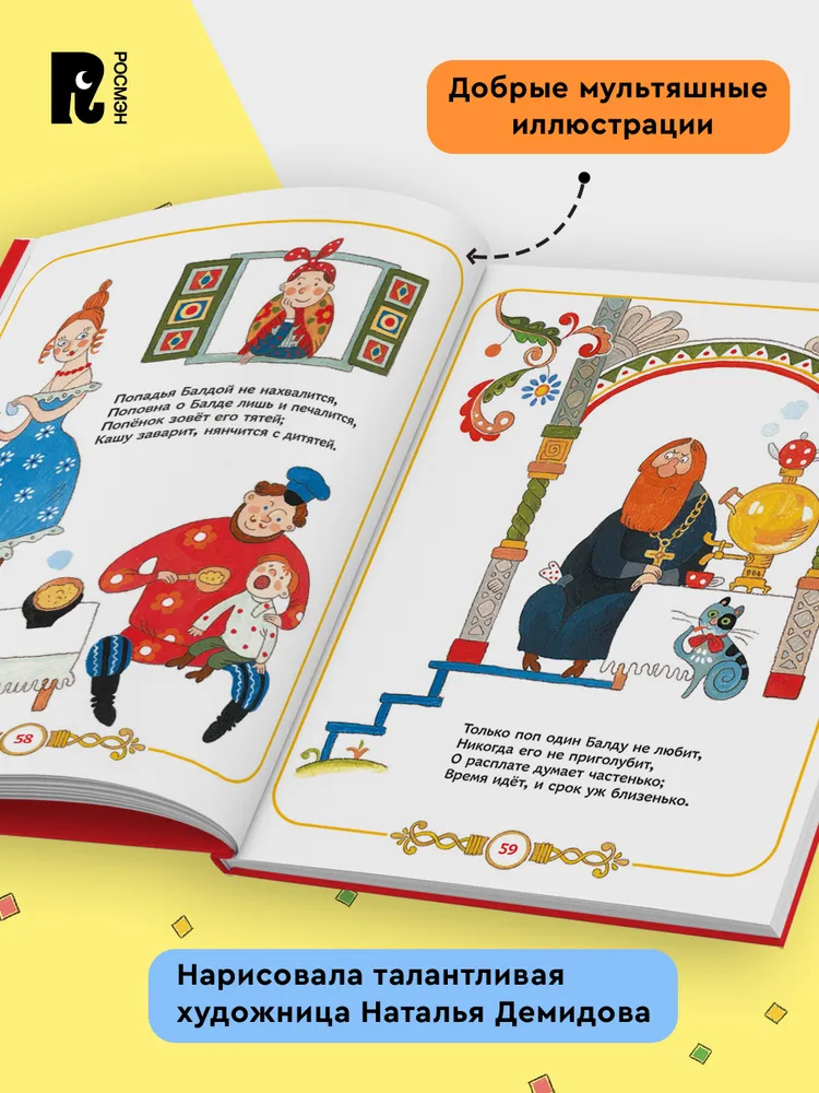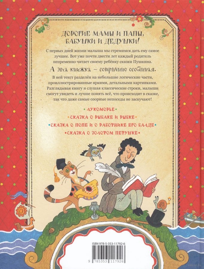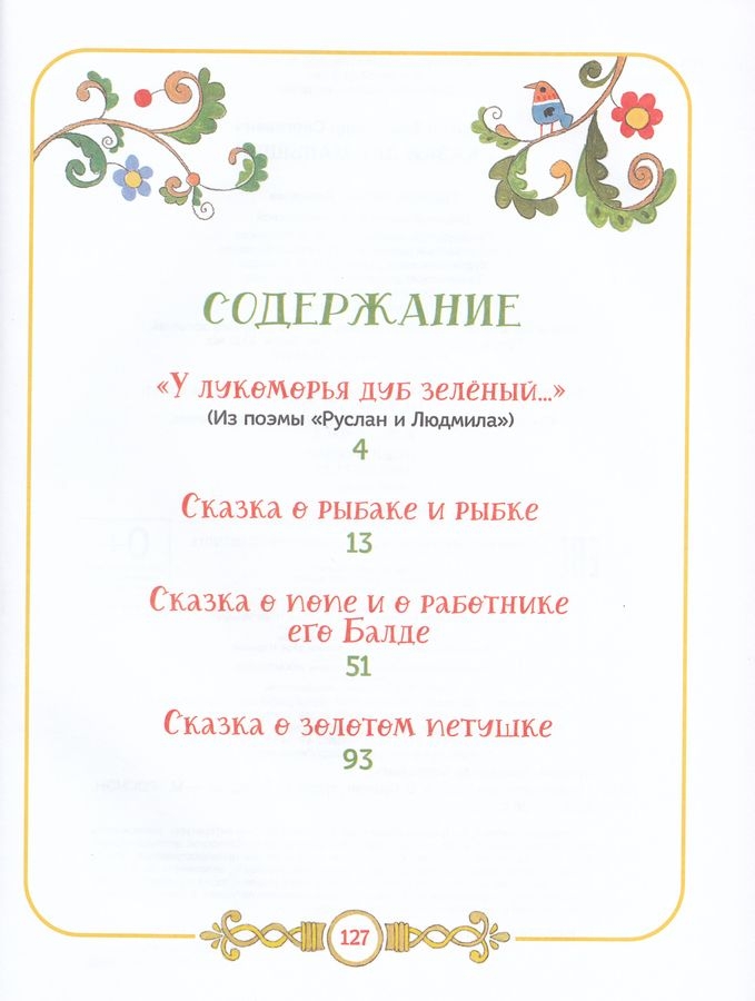 В этой книге: "Лукоморье", "Сказка о рыбаке и рыбке", "Сказка о попе и о работнике его балде", "Сказка о золотом петушке".