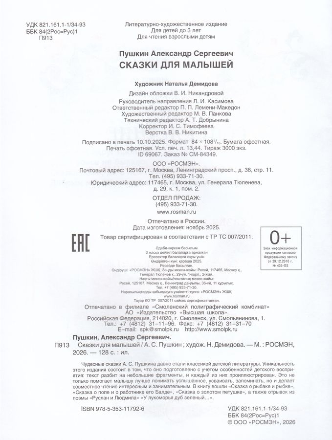 | Изготовитель | ЗАО «РОСМЭН-ПРЕСС». 127018, РФ, г. Москва, ул. Октябрьская, д. 4, строение 2 |