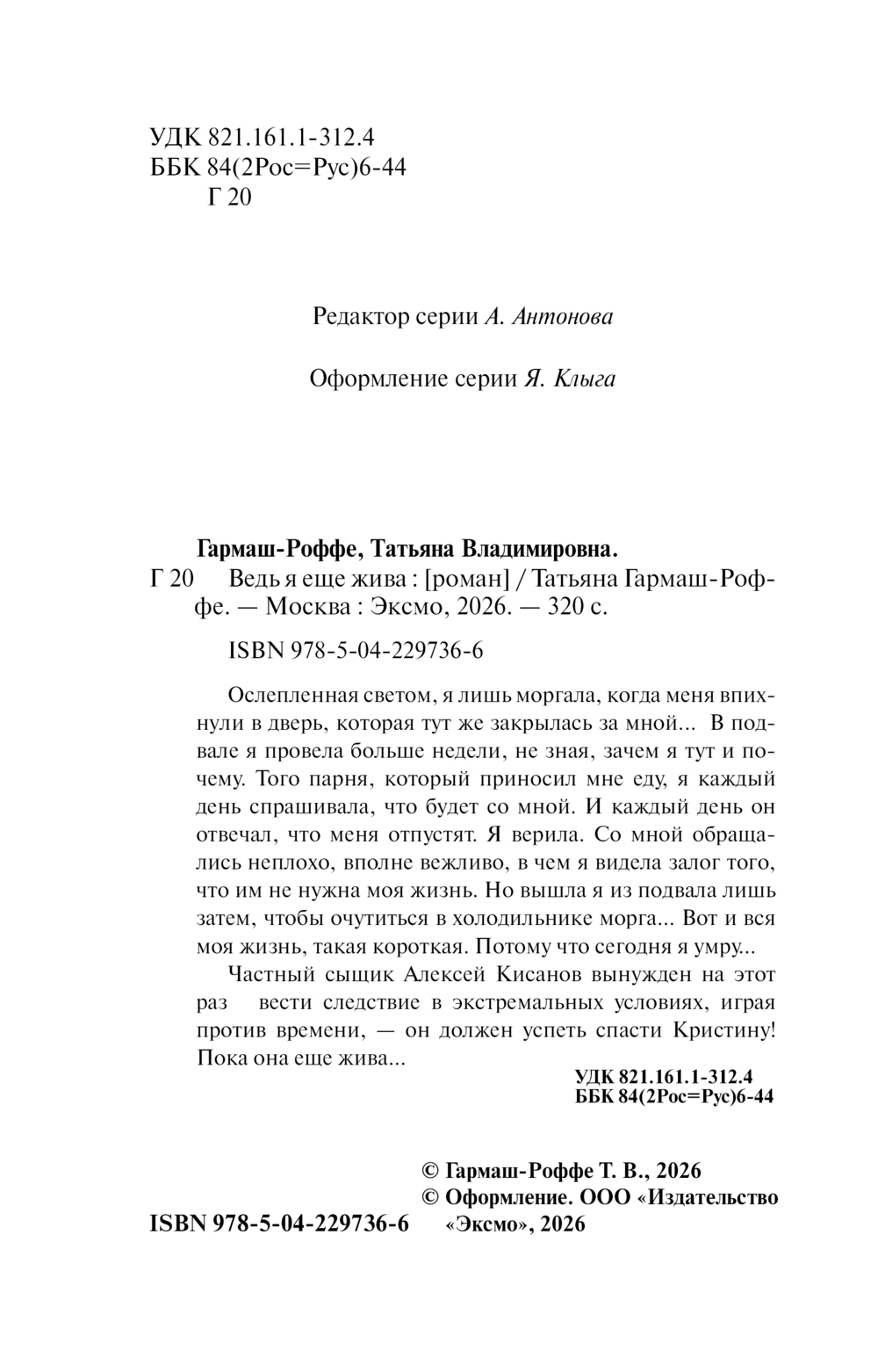 | Серия | Искусство детектива. Романы Т. Гармаш-Роффе |