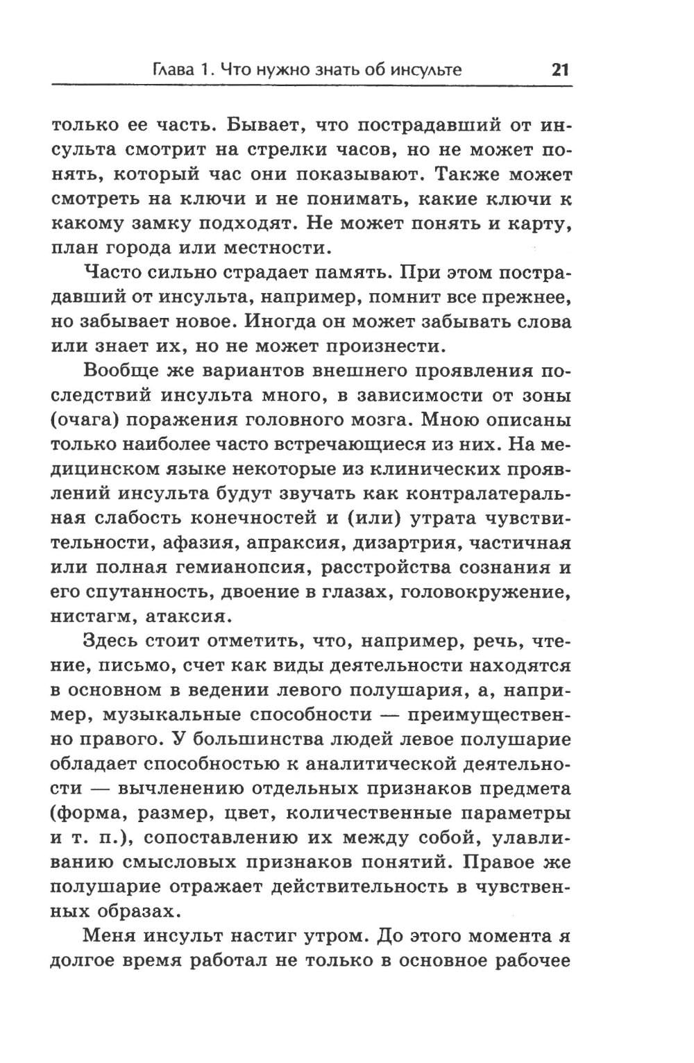 Вы узнаете о том, что такое инсульт, о его последствиях, первых этапах лечения, наиболее эффективных приемах и способах восстановления здоровья. У вас или близкого вам человека случился инсульт? Не отчаивайтесь, у вас есть надежда. На любой стадии постинсультного состояния восстановление здоровья возможно.