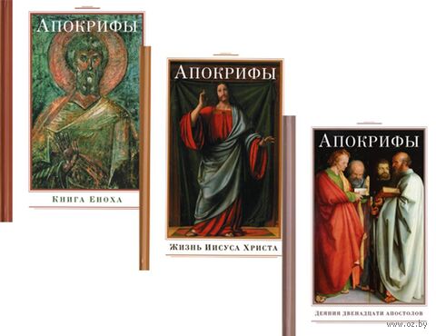 Комплект содержит три книги: "Апокрифы. Жизнь Иисуса Христа" (в сборнике представлены наиболее примечательные Апокрифические Евангелия, написанные во времена апостолов Христа и их последователей), "Апокрифы. Деяния двенадцати апостолов" (апокрифические сочинения о ближайших учениках Иисуса Христа), "Апокрифы. Книга Еноха" (один из наиболее значимых апокрифов Ветхого Завета, в котором рассказано о видениях и пророчествах Еноха и о его путешествии на небеса).