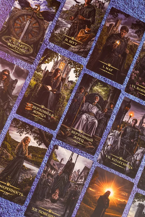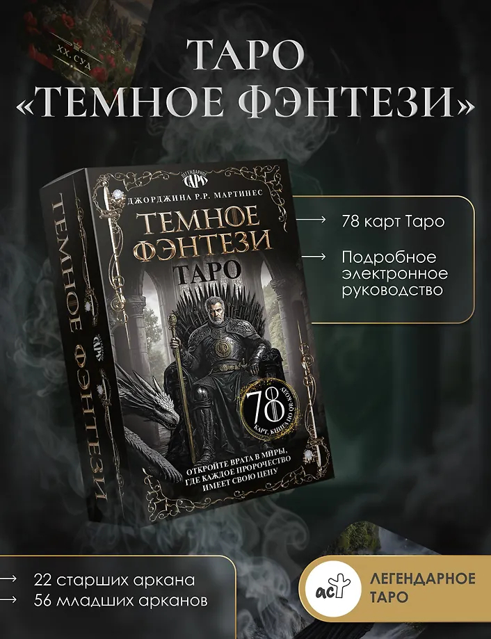 Автор колоды – Джорджина Р. Р. Мартинес – создает мир, в котором работа с Таро превращается в поединок с судьбой. Эта колода для тех, кто не боится вглядеться в бездну и услышать шепот тьмы.