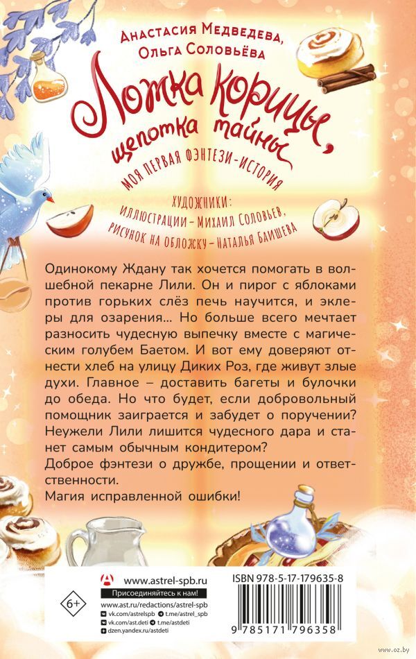 Одинокому Ждану так хочется помогать в волшебной пекарне Лили. Он и пирог с яблоками против горьких слез печь научится, и эклеры для озарения… Но больше всего мечтает разносить чудесную выпечку вместе с магическим голубем Баетом. И вот ему доверяют отнести хлеб на улицу Диких Роз, где живут злые духи. Главное – доставить багеты и булочки до обеда. Но что будет, если добровольный помощник заиграется и забудет о поручении? Неужели Лили лишится чудесного дара и станет самым обычным кондитером?