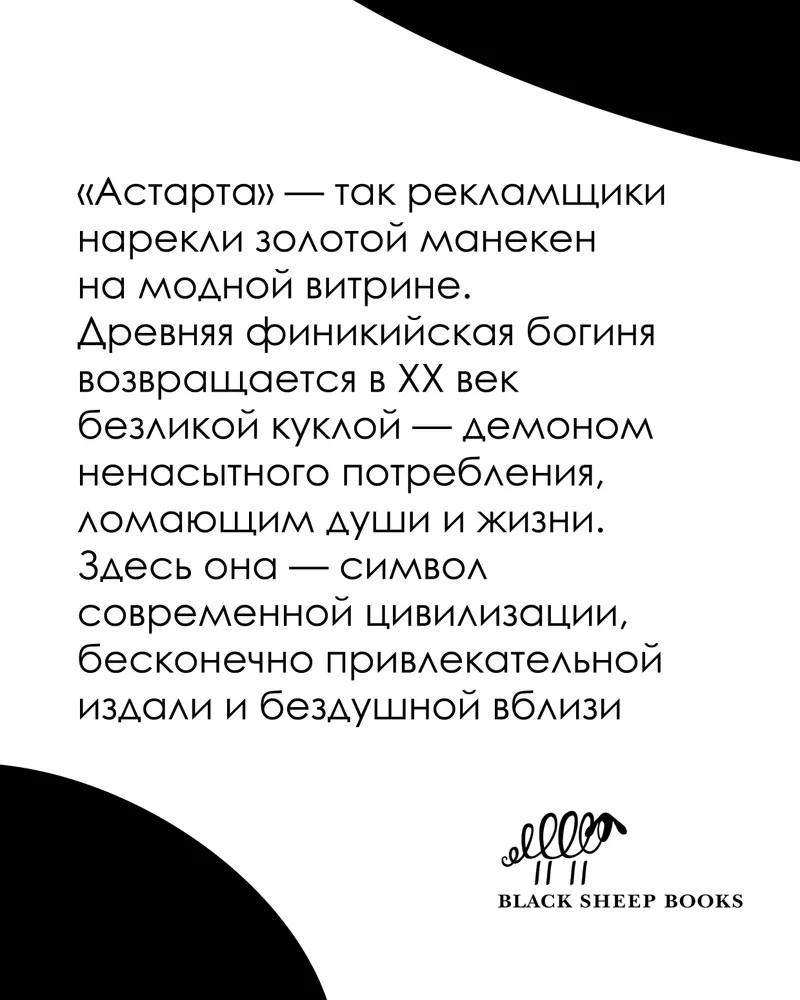 Астарта – так рекламщики нарекли золотой манекен на модной витрине. Древняя финикийская богиня, супруга страшного Ваала возвращается в ХХ век прекрасной безликой куклой – демоном ненасытного потребления, ломающим души и жизни. Здесь она – символ современной цивилизации, бесконечно привлекательной издали и бездушной вблизи: красота оборачивается манипуляцией и объективацией, журналистика врет и морочит, а шелка на витринах оплачены детскими жизнями в далеких странах, – как будто и не прошло 90 с лишним лет с написания романа.