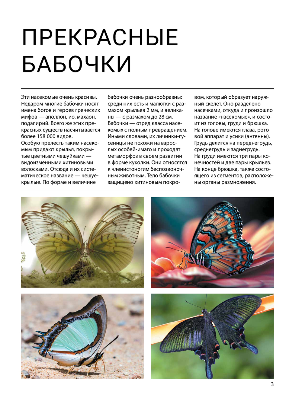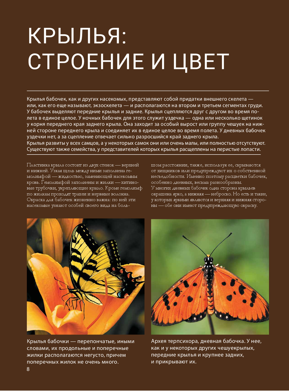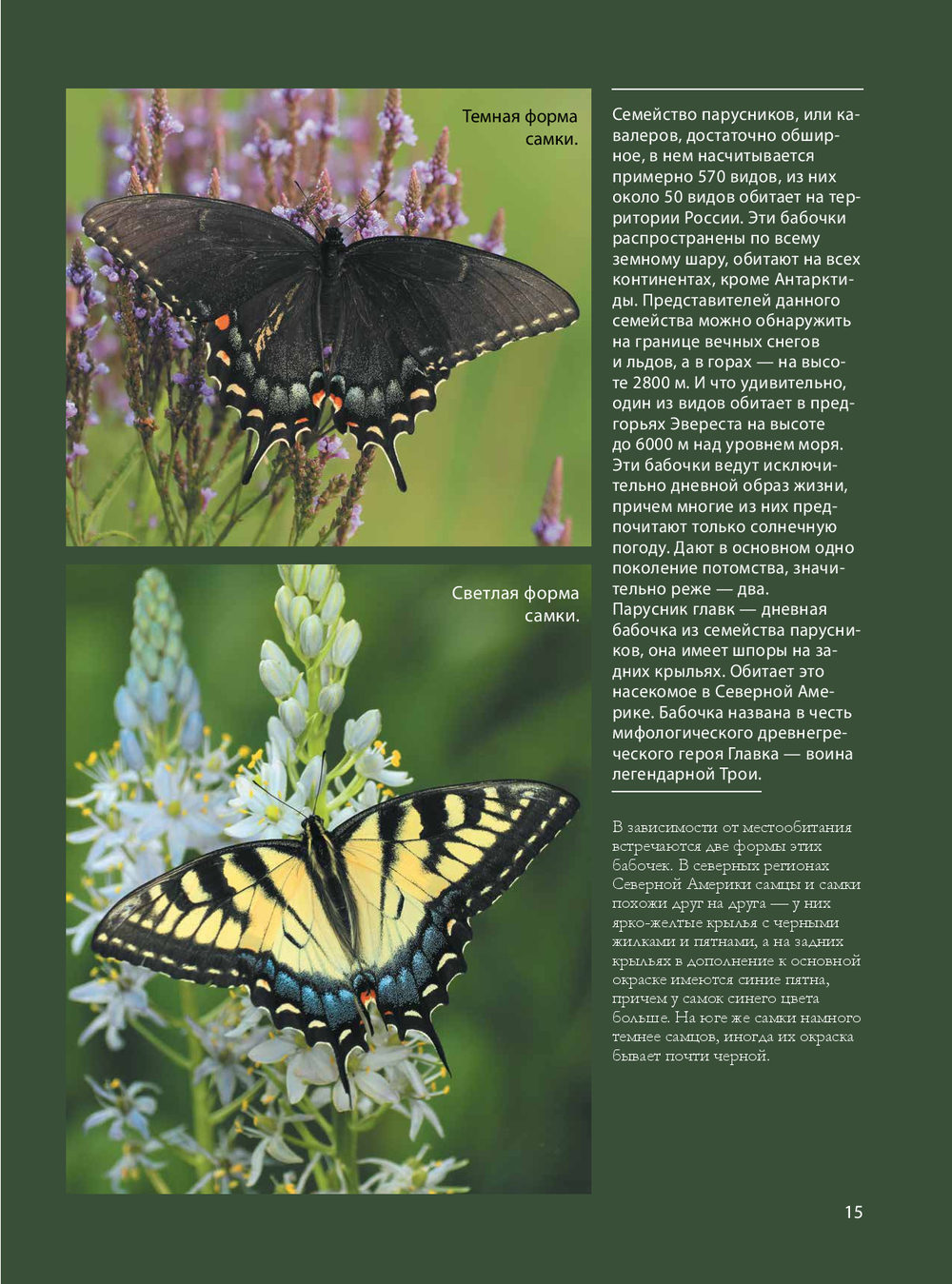 Узнать еще больше любопытных фактов и важных сведений об этих прелестных, хрупких и одновременно выносливых насекомых вы сможете, листая страницы данной книги. Здесь приведена исчерпывающая информация о самых разных бабочках, в том числе об их окраске, размере, образе жизни, распространении и охранном статусе. А главное – сотни эксклюзивных фотографий позволят вам разглядеть этих грациозных существ во всей красе и в мельчайших подробностях, начиная от тончайших узоров на крылышках и заканчивая необычно устроенными глазами и изящными лапками.