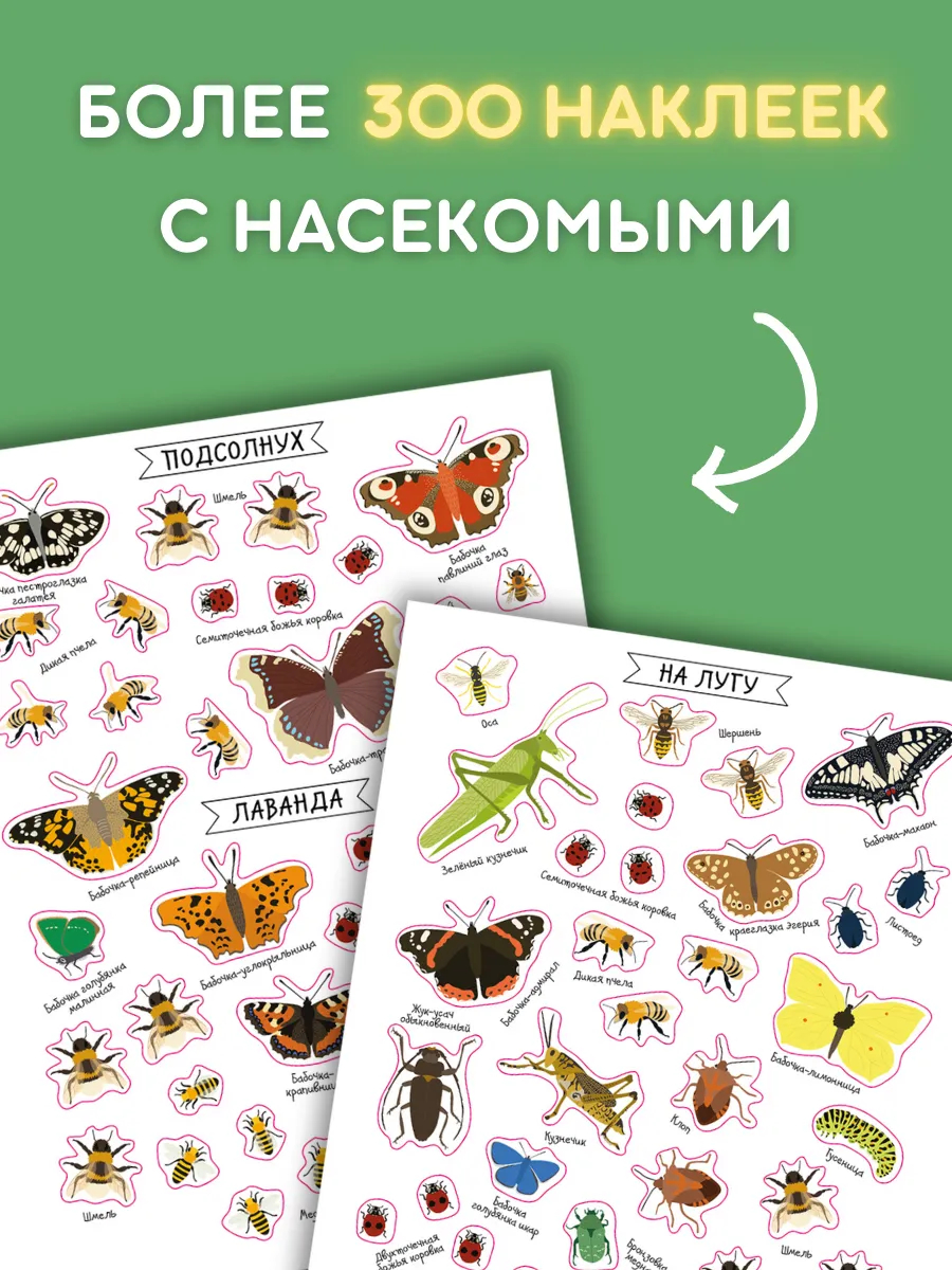 Книга с наклейками откроет разнообразный и красочный мир насекомых.