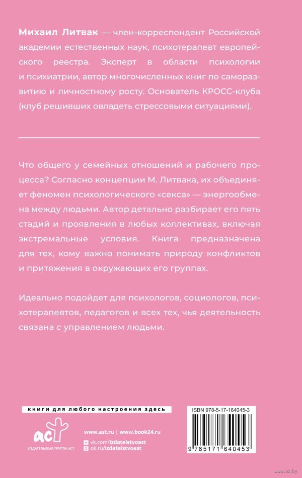 Что общего у семейных отношений и рабочего процесса? Согласно концепции М. Литвака, их объединяет феномен психологического "секса" – энергообмена между людьми. Автор детально разбирает его пять стадий и проявления в любых коллективах, включая экстремальные условия. Книга предназначена для тех, кому важно понимать природу конфликтов и притяжения в окружающих его группах.