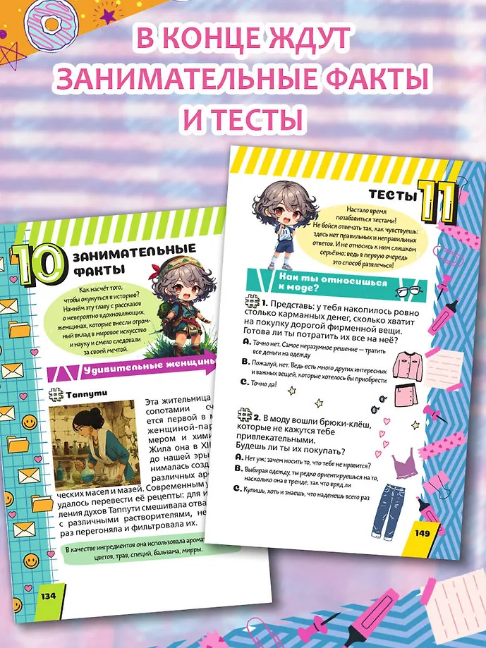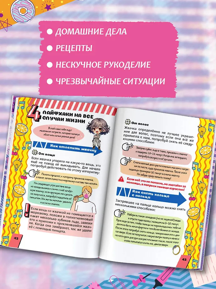 Кроме полезных советов, ты найдёшь здесь идея для рукоделия, рецепты вкусных блюд, милые гороскопы и забавные тесты. Самый необходимый набор знаний и секретов для всех девчонок!