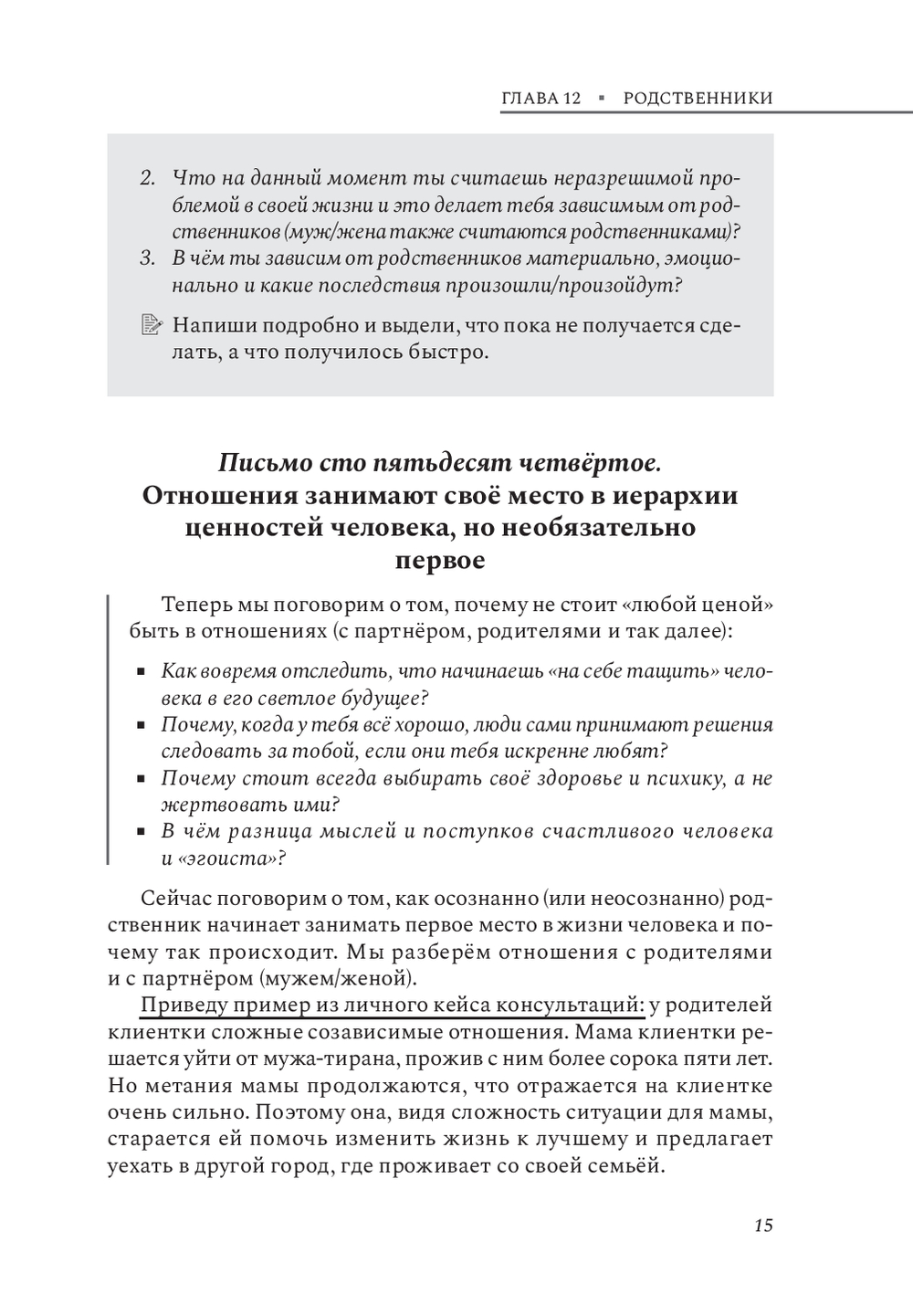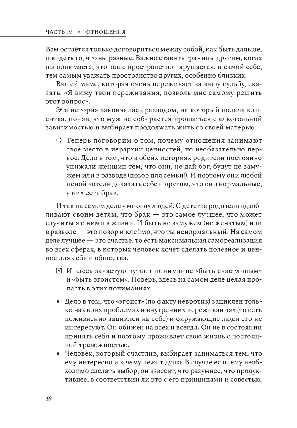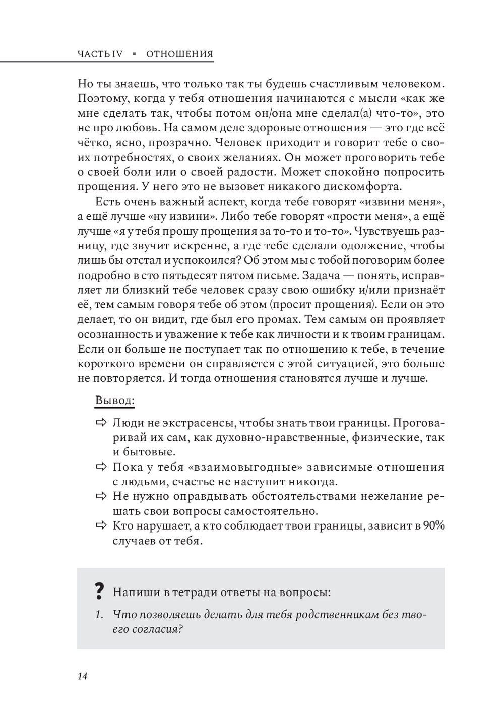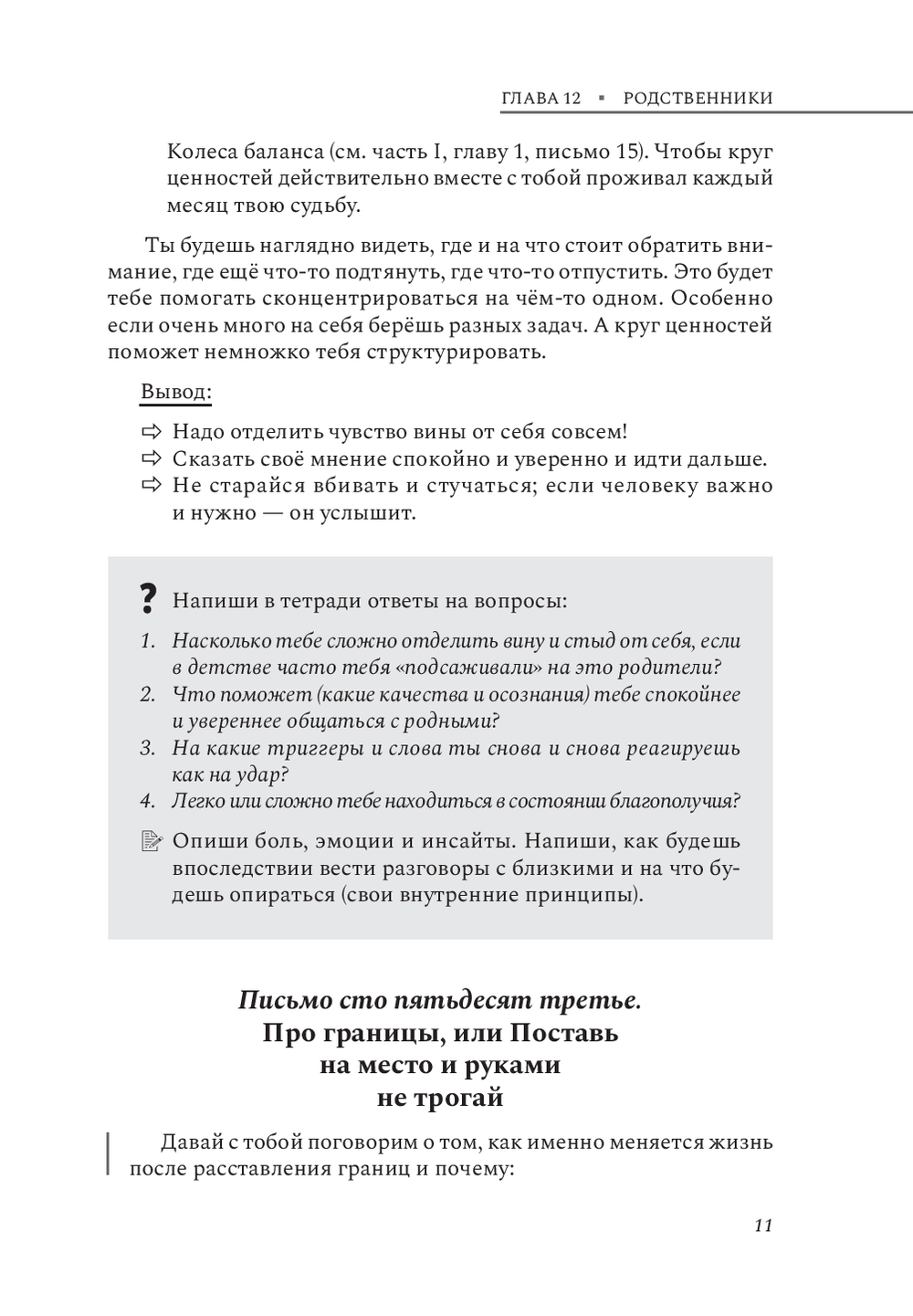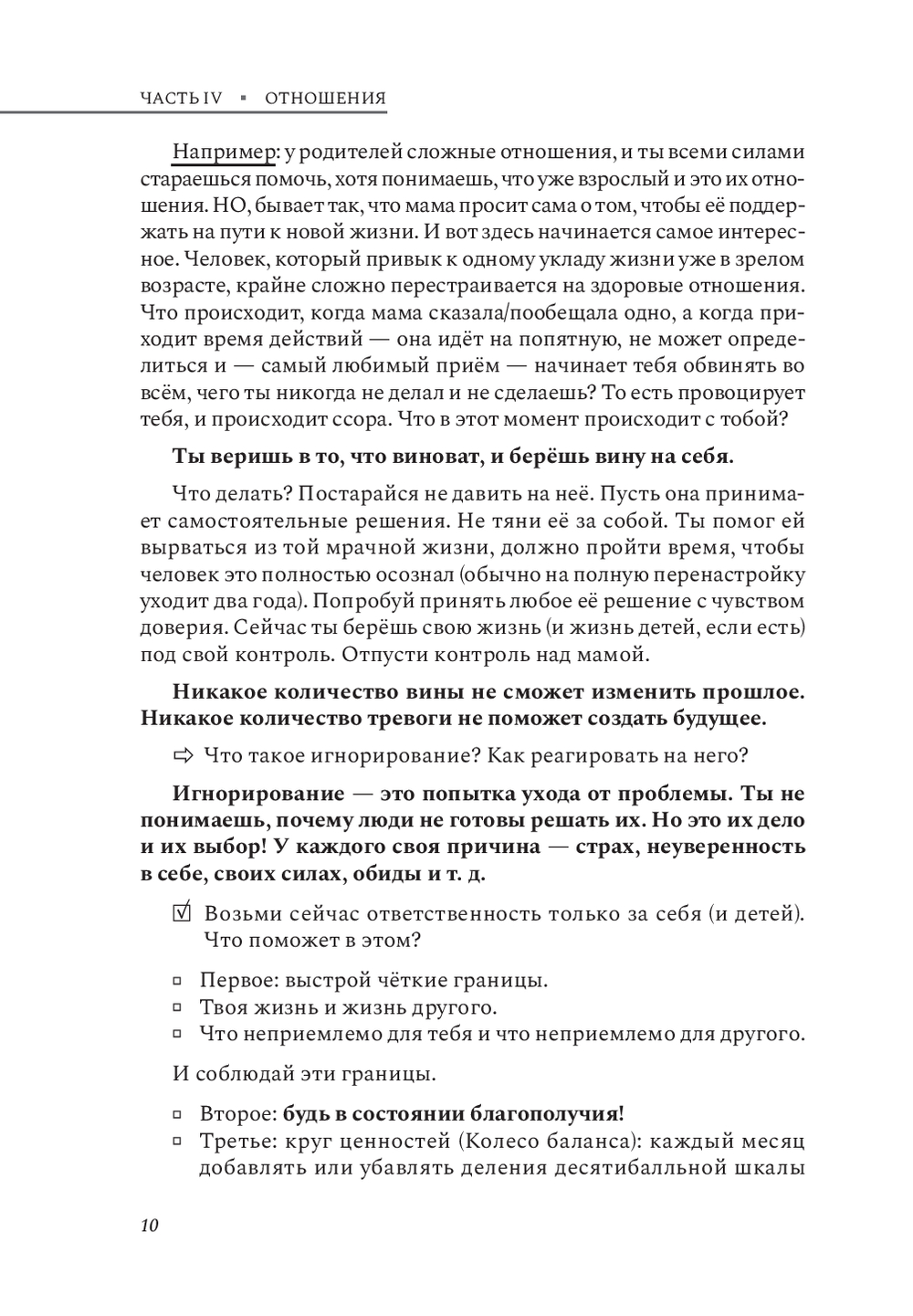 Прочитав вторую часть книги, вы получите ценные инструменты для трансформации собственной жизни. Вы освоите техники для анализа собственных чувств и потребностей, измените угол восприятия всего происходящего и начнете строить гармоничные отношения с партнером и ребенком. Структура книги позволит применить полученные знания немедленно, улучшив качество жизни и отношений вокруг вас.