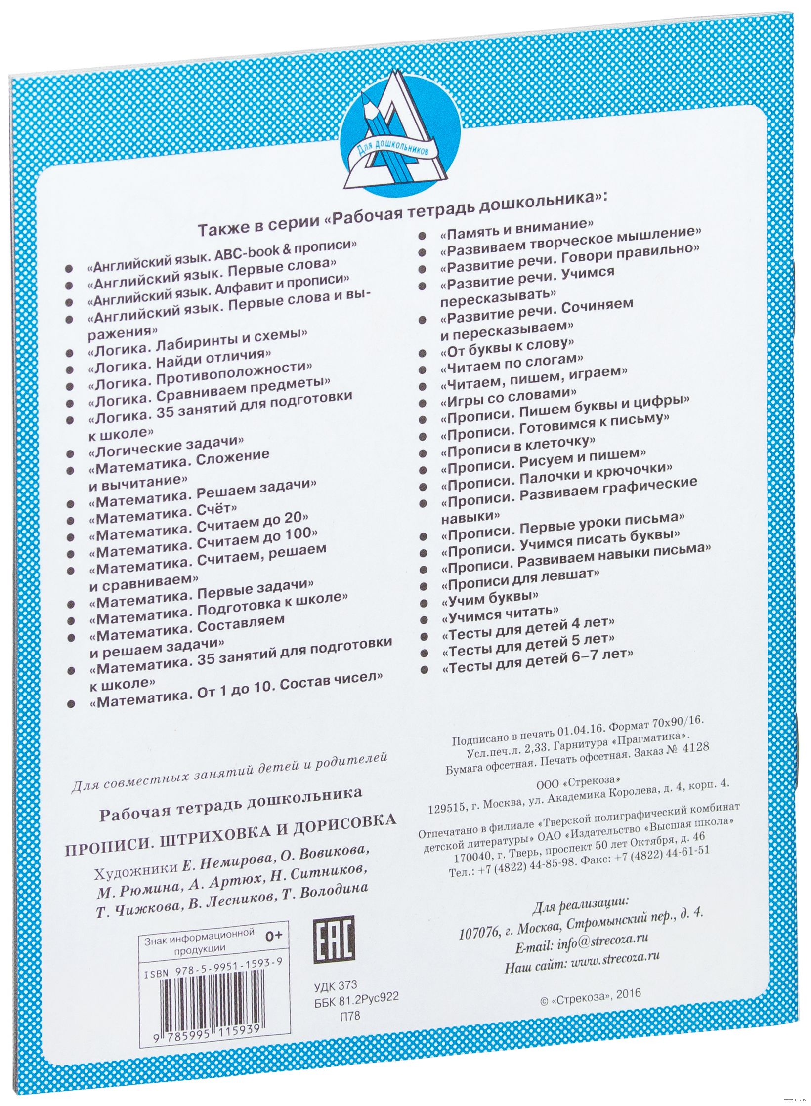 Рабочая тетрадь дошкольника. Прописи. Штриховка и дорисовка.