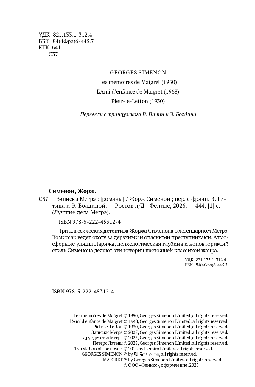 Первая, сорок первая и семьдесят шестая книги цикла «Комиссар Мегрэ».