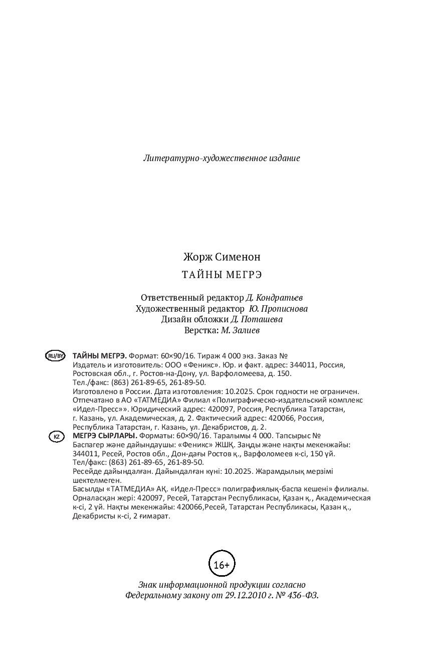 | Изготовитель | ЗАО "Издательство "Феникс". 190000, РФ, г. Санкт-Петербург, пер. Антоненко, 2 |