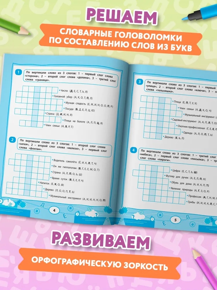 В сборник включены игровые задания со словами, способствующие развитию орфографической зоркости у младших школьников. Это филворды – словарные головоломки по составлению слов из букв. В процессе игры, рассчитанной на детей 6-10 лет, учащиеся запоминают правила написания слов, усваивают их значение, учатся давать определения различным понятиям.