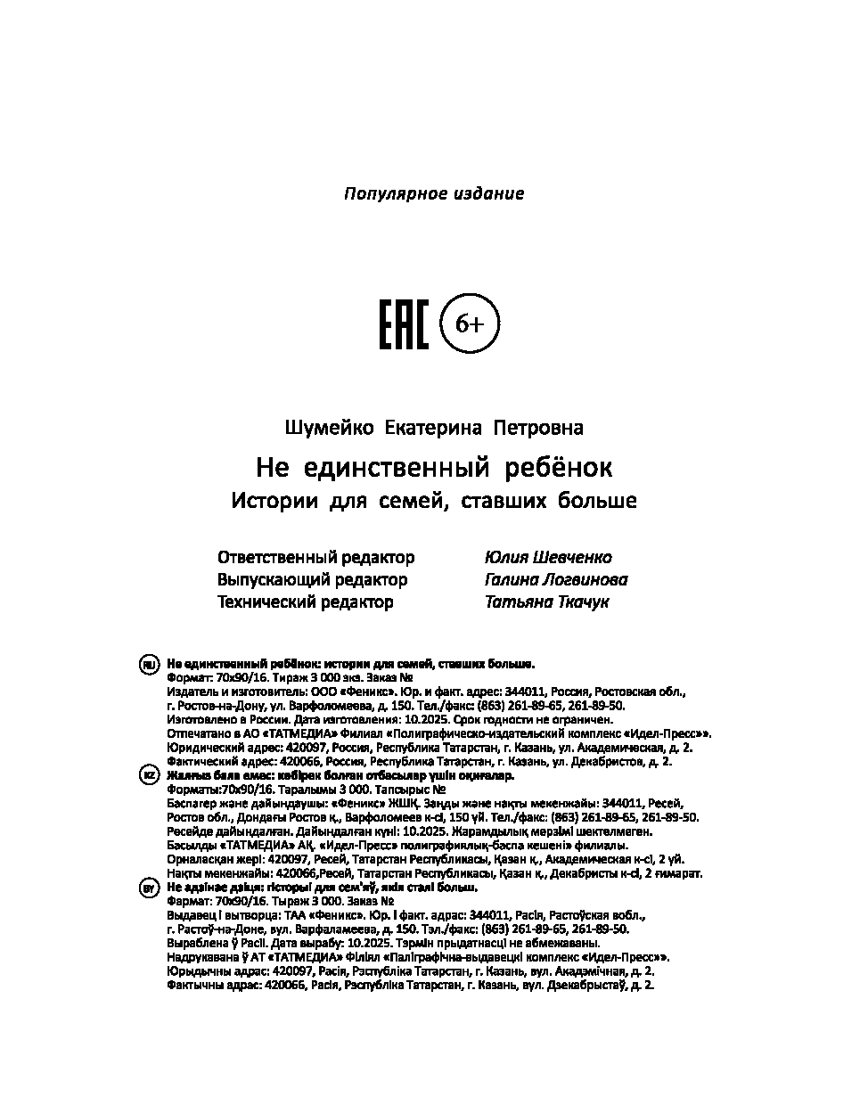| Изготовитель | ЗАО "Издательство "Феникс". 190000, РФ, г. Санкт-Петербург, пер. Антоненко, 2 |