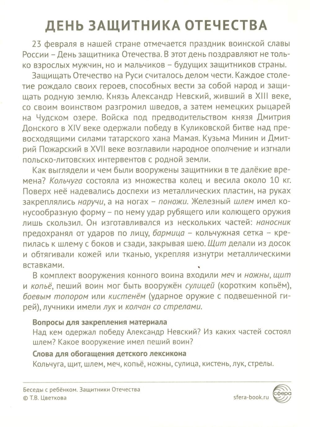 Защитники Отечества (12 картинок с текстом, в папке, А5)