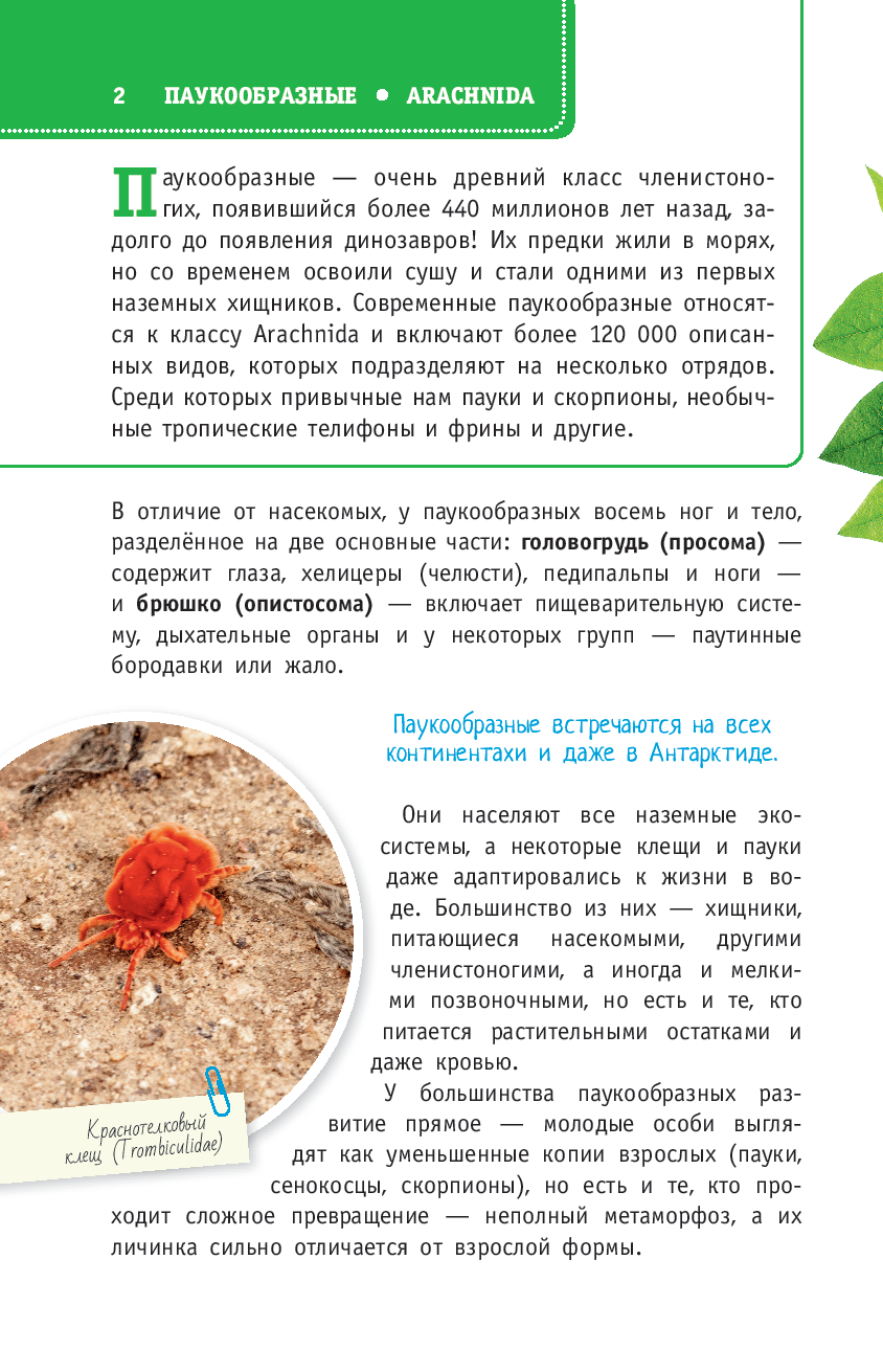 Определитель "Пауки, скорпионы и многоножки", написанный известным биологом Ильей Гомырановым, поможет всем любителям природы научиться определять пауков, многоножек, скорпионов и других паукообразных в лесу, на лугу, в городских парках, расскажет, по каким признакам можно различать пауков одного вида, представит примеры их облика на анималистических рисунках и фотографиях.