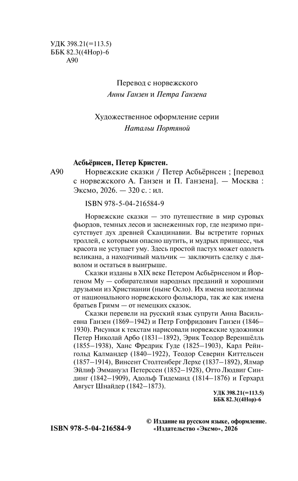 Сказки перевели на русский язык супруги Анна Васильевна Ганзен (1869-1942) и Петр Готфридович Ганзен (1846-1930). Рисунки к текстам нарисовали норвежские художники Петер Николай Арбо (1831-1892), Эрик Теодор Вереншёлль (1855-1938), Ханс Фредрик Гуде (1825-1903), Карл Рейнгольд Калмандер (1840-1922), Теодор Северин Киттельсен (1857-1914), Винсент Столтенберг Лерхе (1837-1892), Ялмар Эйлиф Эммануэл Петерссен (1852-1928), Отто Людвиг Синдинг (1842-1909), Адольф Тидеманд (1814-1876) и Герхард Август Шнайдер (1842-1873).