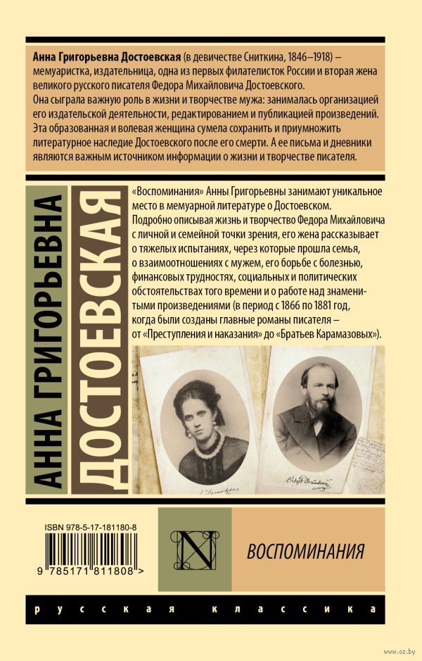 "Воспоминания" Анны Григорьевны занимают уникальное место в мемуарной литературе о Достоевском. Подробно описывая жизнь и творчество Федора Михайловича с личной и семейной точки зрения, его жена рассказывает о тяжелых испытаниях, через которые прошла семья, о взаимоотношениях с мужем, его борьбе с болезнью, финансовых трудностях, социальных и политических обстоятельствах того времени и о работе над знаменитыми произведениями (в период с 1866 по 1881 год, когда были созданы главные романы писателя – от "Преступления и наказания" до "Братьев Карамазовых").
