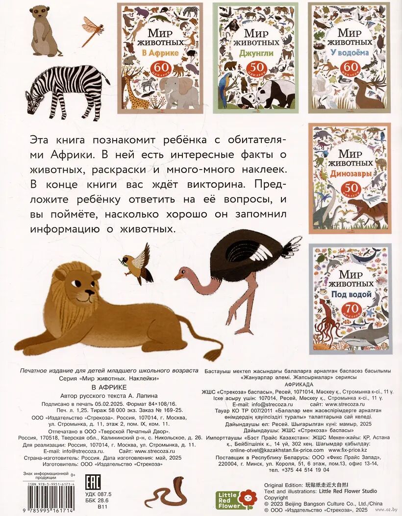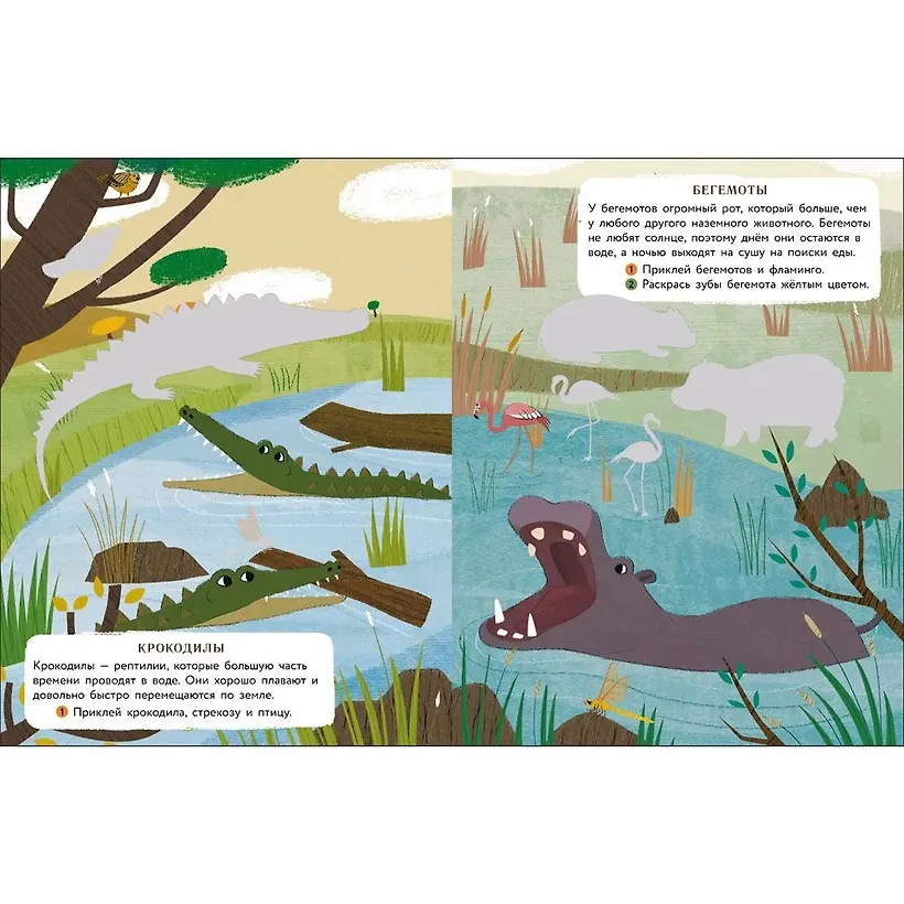 Эта книга познакомит ребёнка с обитателями Африки. В ней есть интересные факты о животных, раскраски и много-много наклеек. В конце книги вас ждёт викторина. Предложите ребёнку ответить на её вопросы, и вы поймёте, насколько хорошо он запомнил информацию.