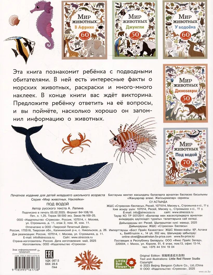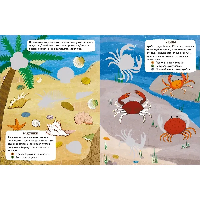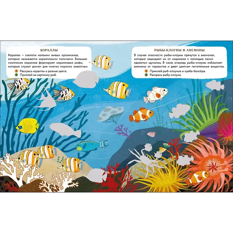 Эта книга познакомит ребёнка с подводными обитателями. В ней есть интересные факты о морских животных, раскраски и много-много наклеек. В конце книги вас ждёт викторина. Предложите ребёнку ответить на её вопросы, и вы поймёте, насколько хорошо он запомнил информацию.