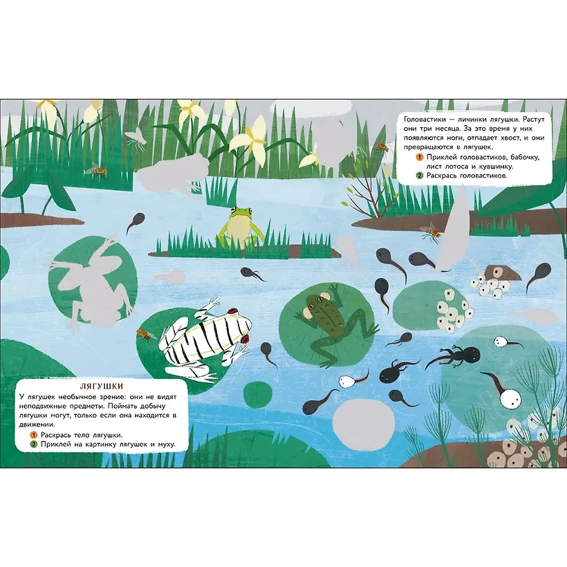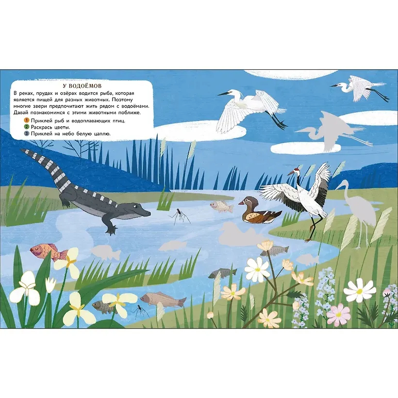 Эта книга познакомит ребёнка с обитателями водоёмов. В ней есть интересные факты о животных рек и озёр, а также раскраски и много-много наклеек. В конце книги вас ждёт викторина. Предложите ребёнку ответить на её вопросы, и вы поймёте, насколько хорошо он запомнил информацию.