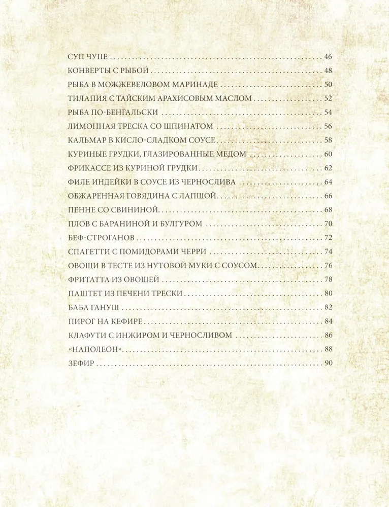 Книга построена по классическому принципу универсальной – в ней можно найти рецепты всех групп блюд, составляющих трапезу – салатов, закусок, супов, основных блюд из рыбы, птицы и мяса, десертов. Авторы не обошли вниманием и вегетарианцев.