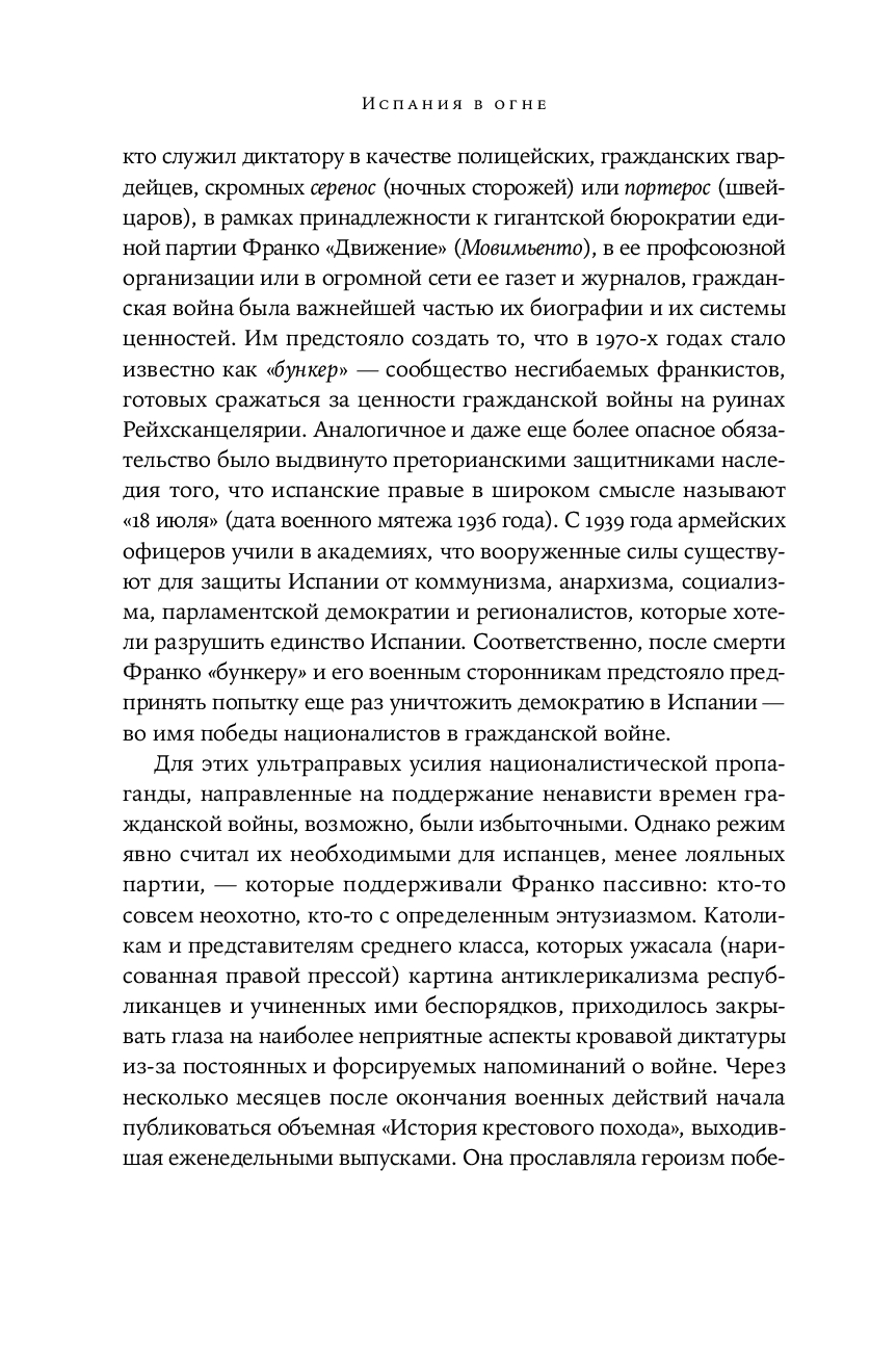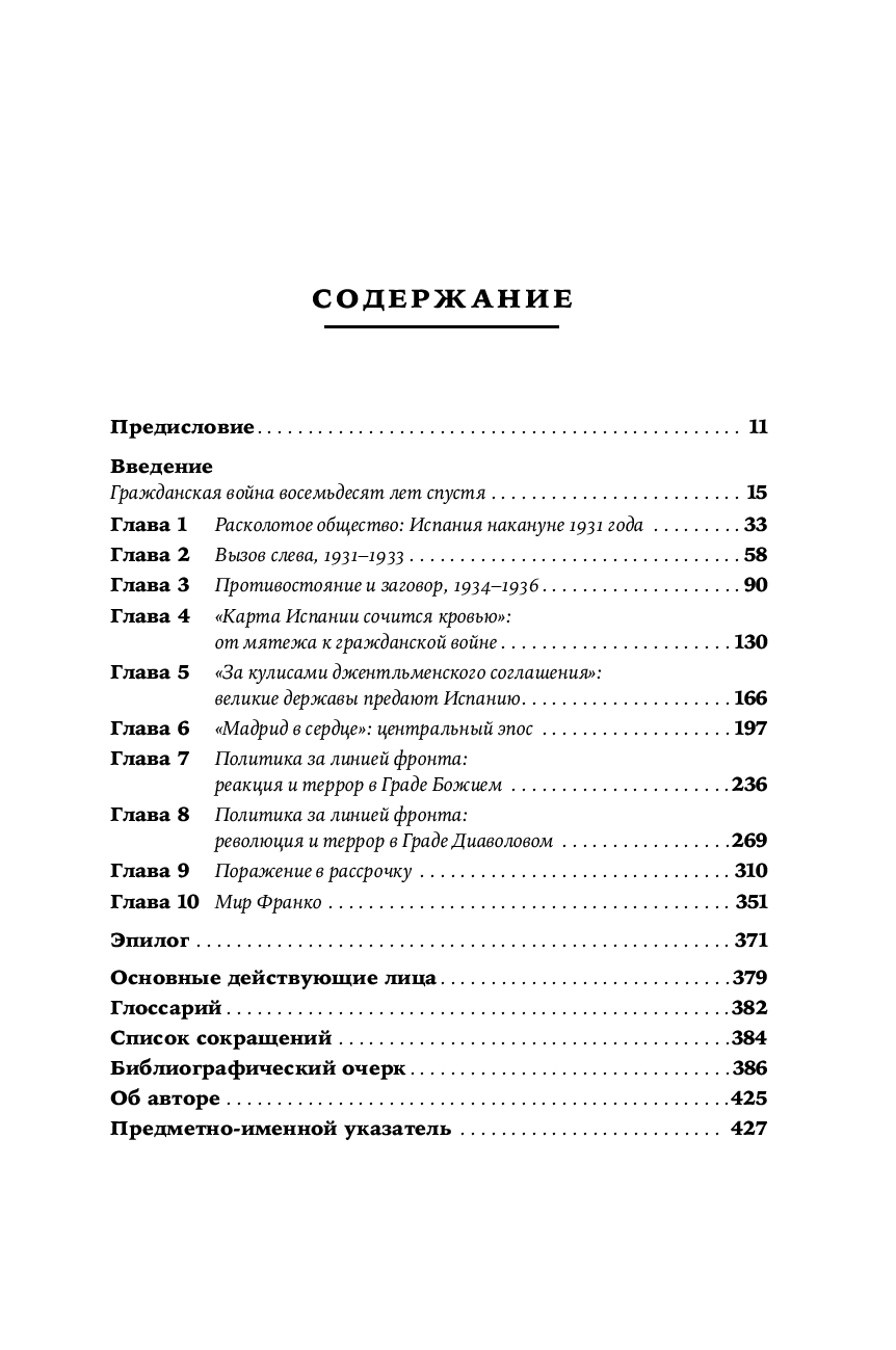 Глубокое исследование одного из ключевых конфликтов XX века: не столько хроника событий, сколько полная научная "биография войны". Цель автора – объяснить, почему именно Испания 1930-х превратилась в арену классового, идеологического и международного столкновения. Престон показывает, как политические силы – от анархистов до монархистов – боролись за свое видение справедливости, как и почему вмешательство нацистской Германии, фашистской Италии и других стран превратило внутреннюю войну в прелюдию и генеральную репетицию Второй мировой – и предопределило ее формы. Как истребление целых социальных групп стало смыслом и целью этой войны – и как дальновидный Франко, формируя свою модель послевоенной Испании, намеренно уничтожал историческую память проигравших. Автор показывает разные "правды" и объясняет, почему формально закончившаяся война продолжается до сих пор – и актуальна далеко не только для самих испанцев.