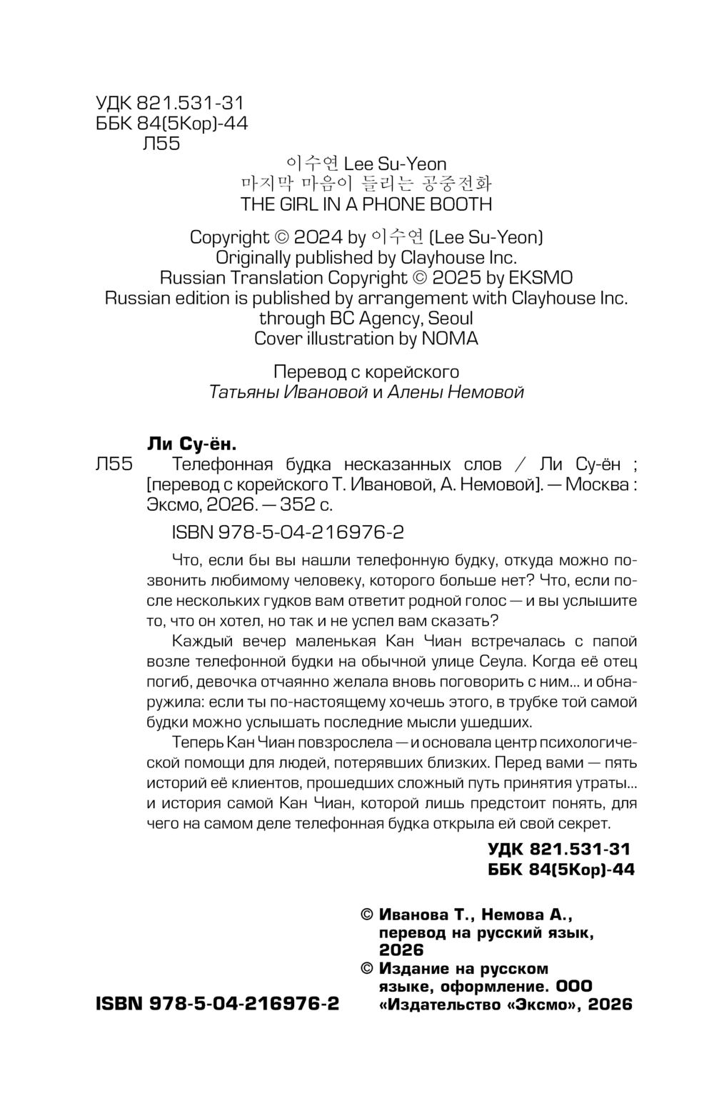 Теперь Кан Чиан повзрослела – и основала центр психологической помощи для людей, потерявших близких. Перед вами – пять историй её клиентов, прошедших сложный путь принятия утраты… и история самой Кан Чиан, которой лишь предстоит понять, для чего на самом деле телефонная будка открыла ей свой секрет.